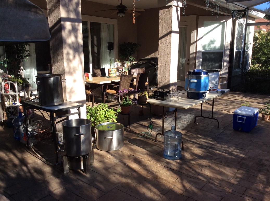 Gestern morgen hab ich meine Anlage zu einem Freund gekarrt und dann haben wir zusammen, jeder auf seiner Anlage, gebraut. Bei mir wars ein dunkles Weizen.