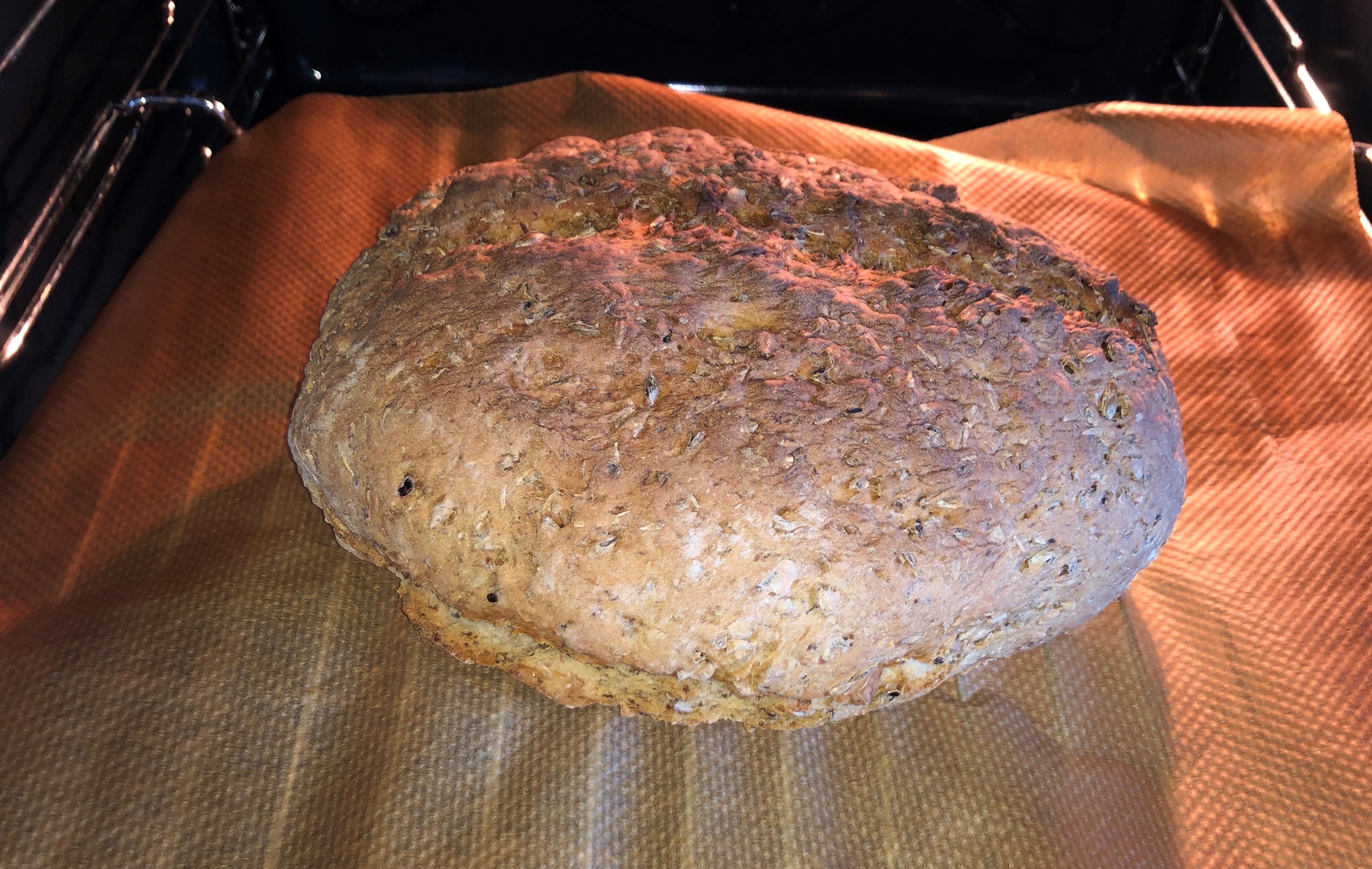 Nebenbei habe ich dann noch "versucht" ein Treberbrot nach dem Rezept hier aus dem Forum zu backen. "Versucht" deswegen, weil ich blöderweise am Anfang noch daran gedacht habe, dass ich das Salz später zugeben muss, aber hinterher dann nicht mehr. Nun sieht es zwar gut aus, schmeckt aber leider nicht so.