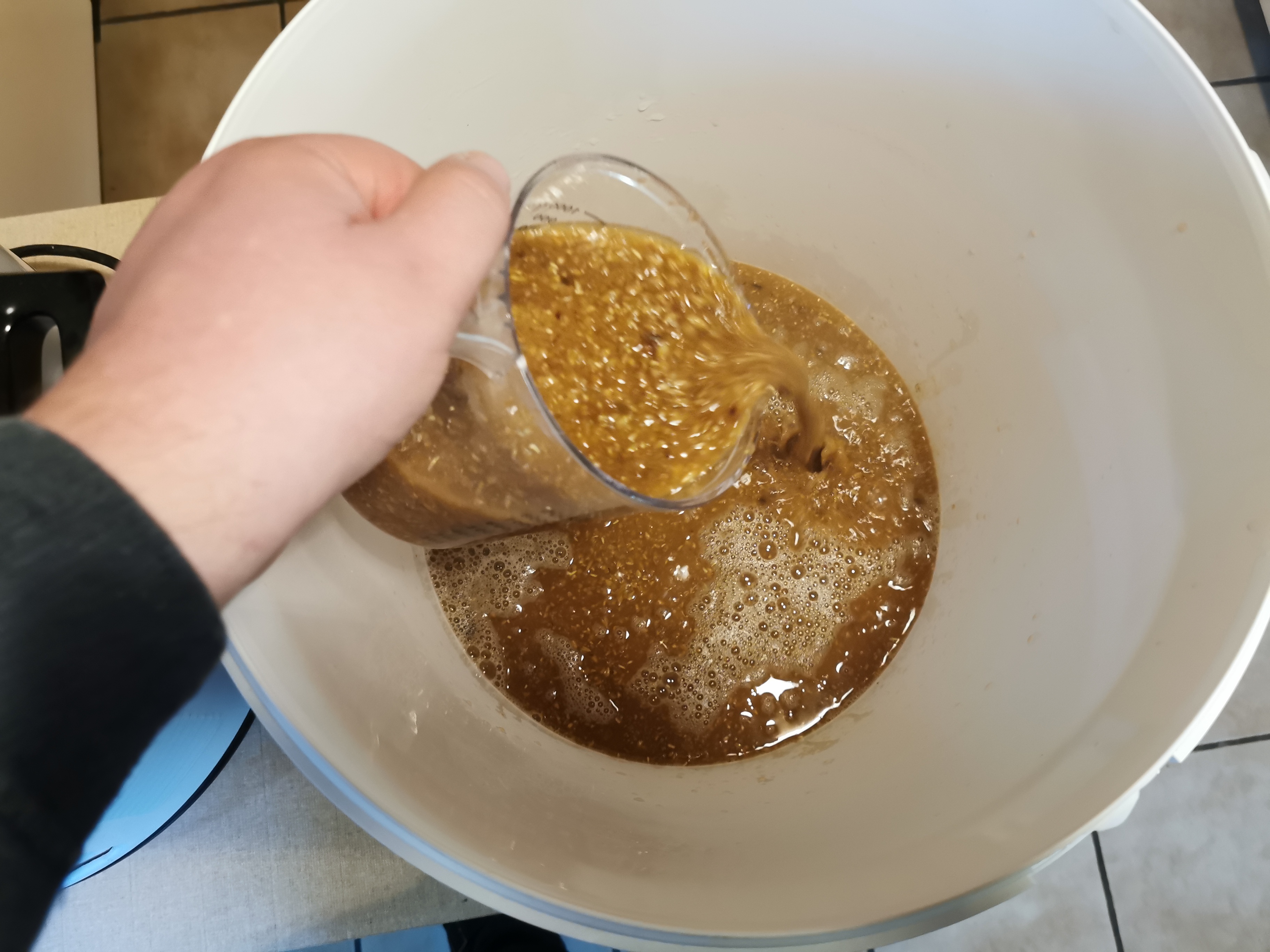 Von der Gärung habe ich leider keine Fotos. Die Würze schlage ich zum belüften mit einem Schneebesen auf und Kippe die Trockenhefe einfach rein, hat bisher immer einwandfrei funktioniert, weshalb ich mir die Anstellwürze spare.