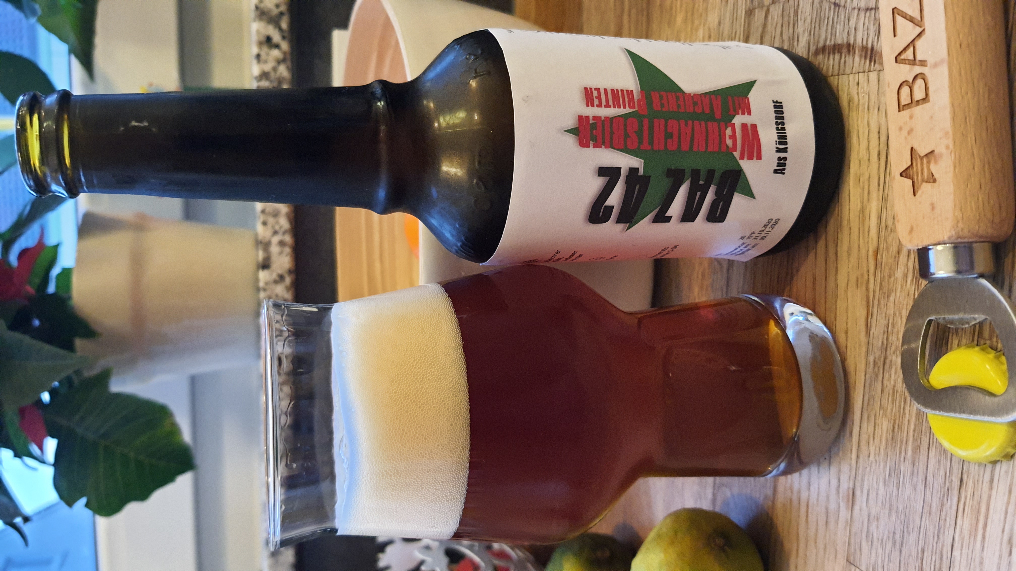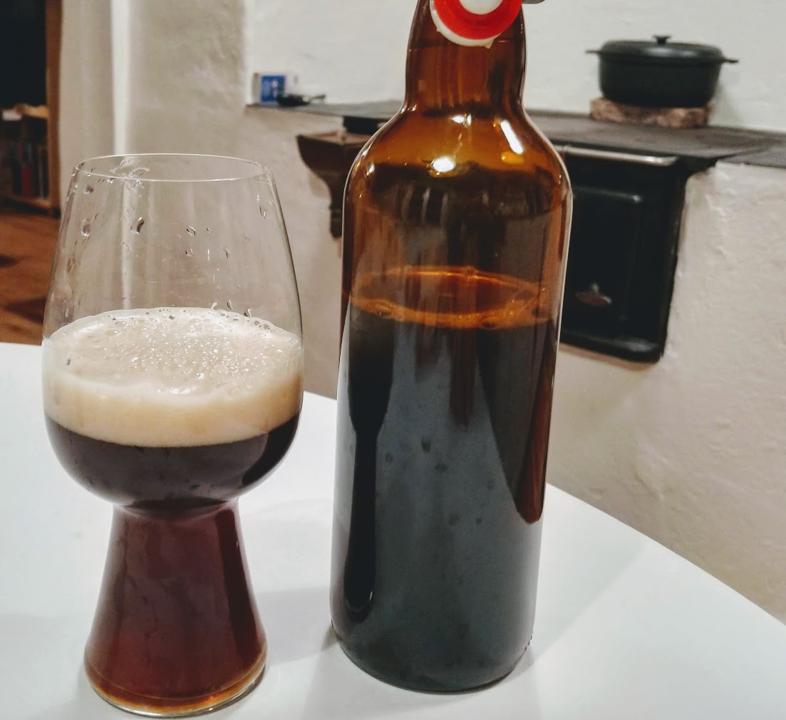 Ich trinke gerade ein Weihnachtsbier mit Aachener Printen, welches ich im Oktober gebraut habe.