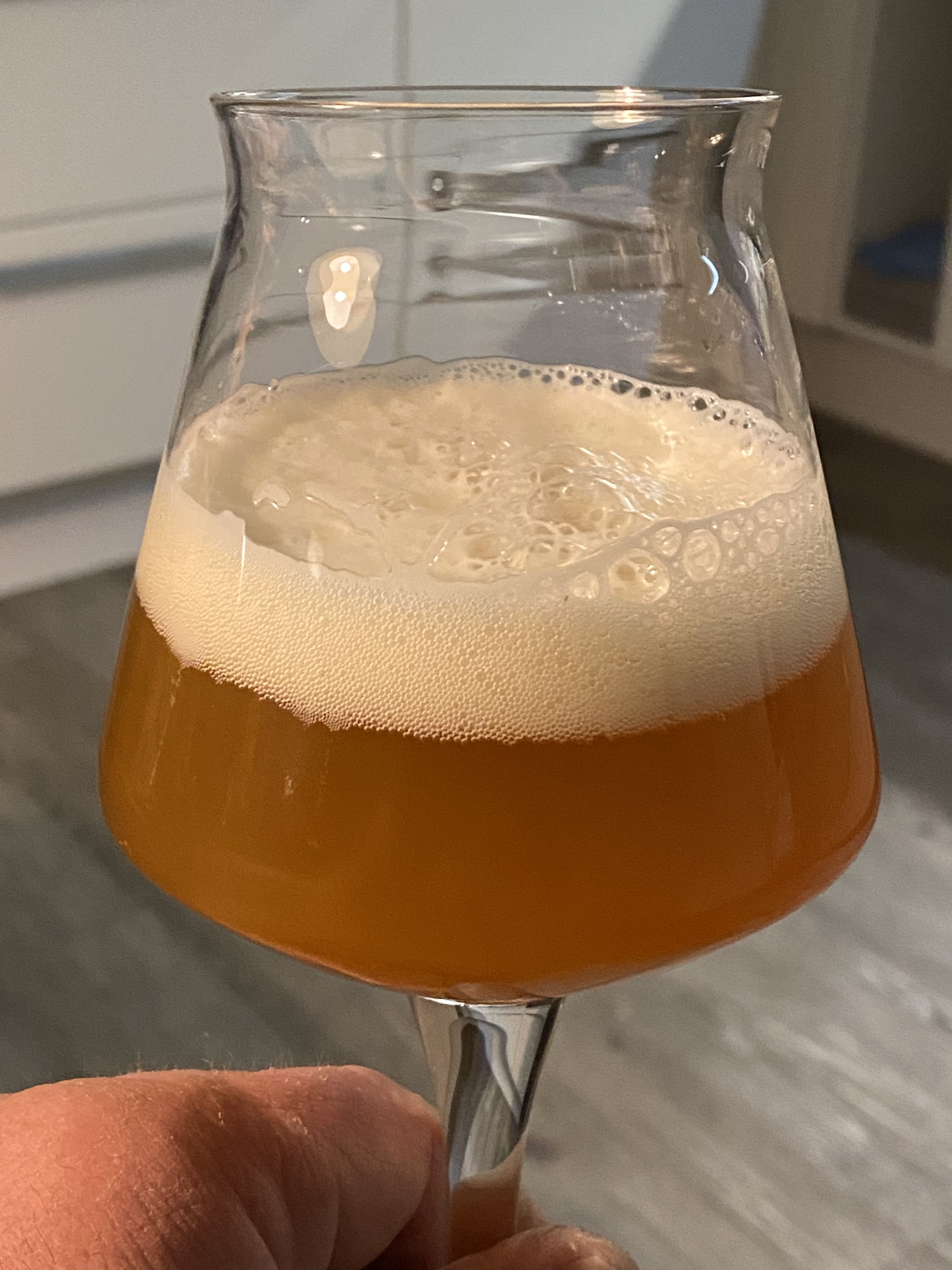 NEIPA mit Galaxy, Citra, Mosaic. Anteilig Weizenmalz und Haferflocken. US05. Ca 5% Alk.