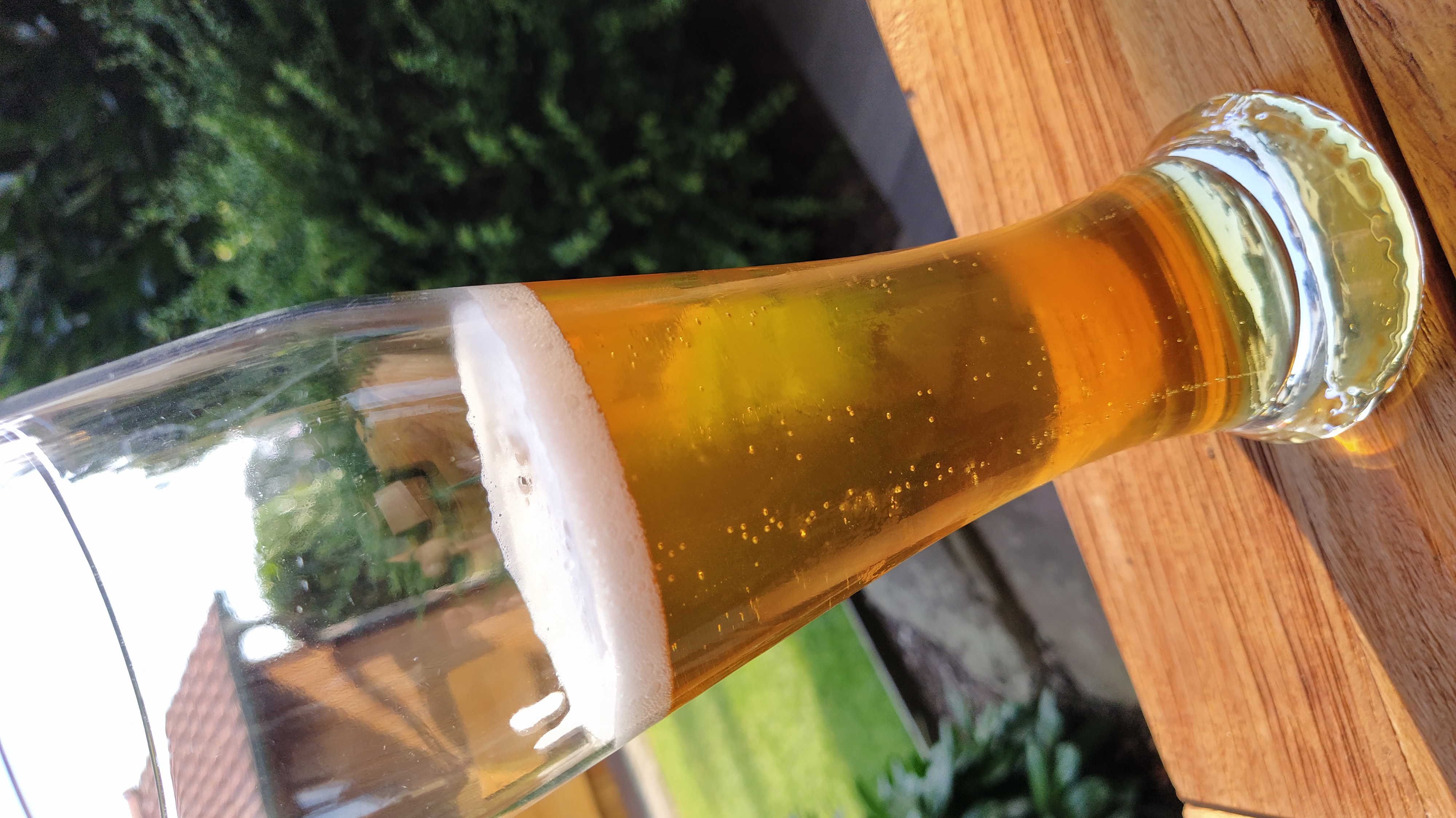 Optisch ist es, wie man es sicht wünscht, helle Farbe, deutliche Trübung und stabiler, feinporiger Schaum wirklich sehr gut gelungen.