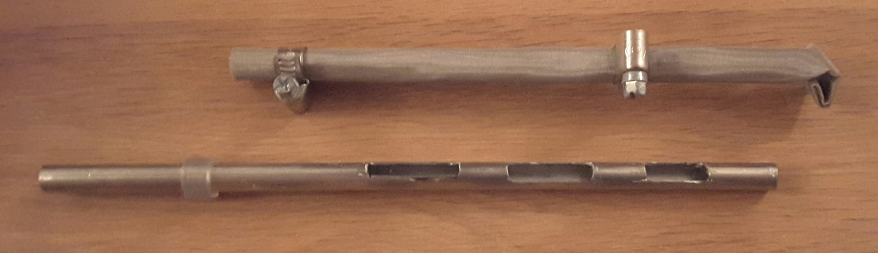 Zum Schutz der Pumpe habe ich mir ein 10mm Rohr mit Drahtsieb gebastelt