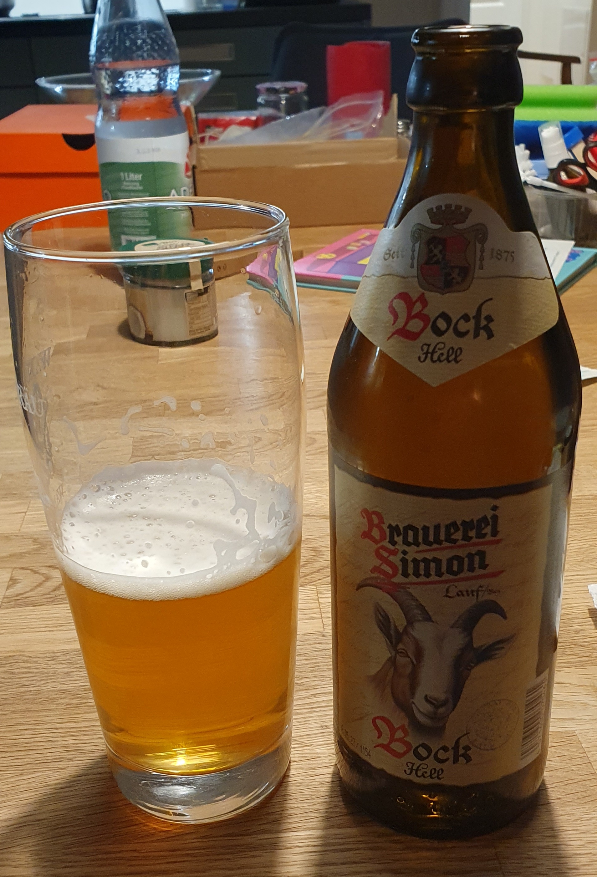 Als "Anstell-Halbe" den hellen Bock der Brauerei Simon.