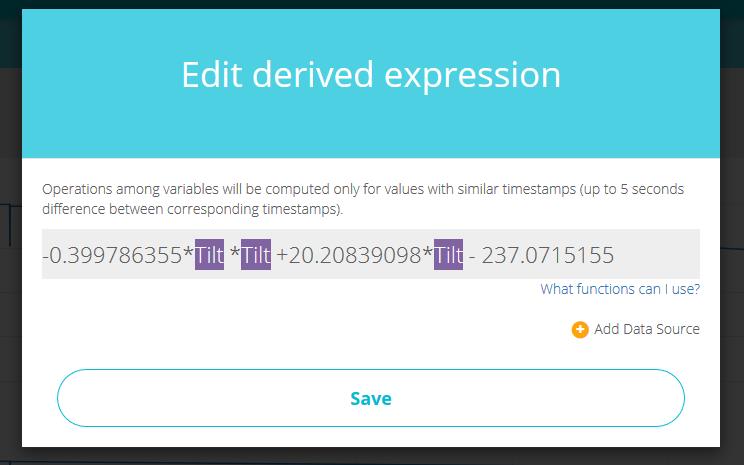 1. Ubidots hat Probleme mit dem Polynom. Das kannst du kontrollieren, indem du auf die Derived Variable klickst. In der Ansicht, in der oben das Diagramm ist und unten die Tabelle mit den berechneten Werten, stehen links Details zu der Variable. Unter anderem auch das Polynom. Da darf kein "undefined" drin auftauchen. Die Formel könntest du dort auch direkt korrigieren.