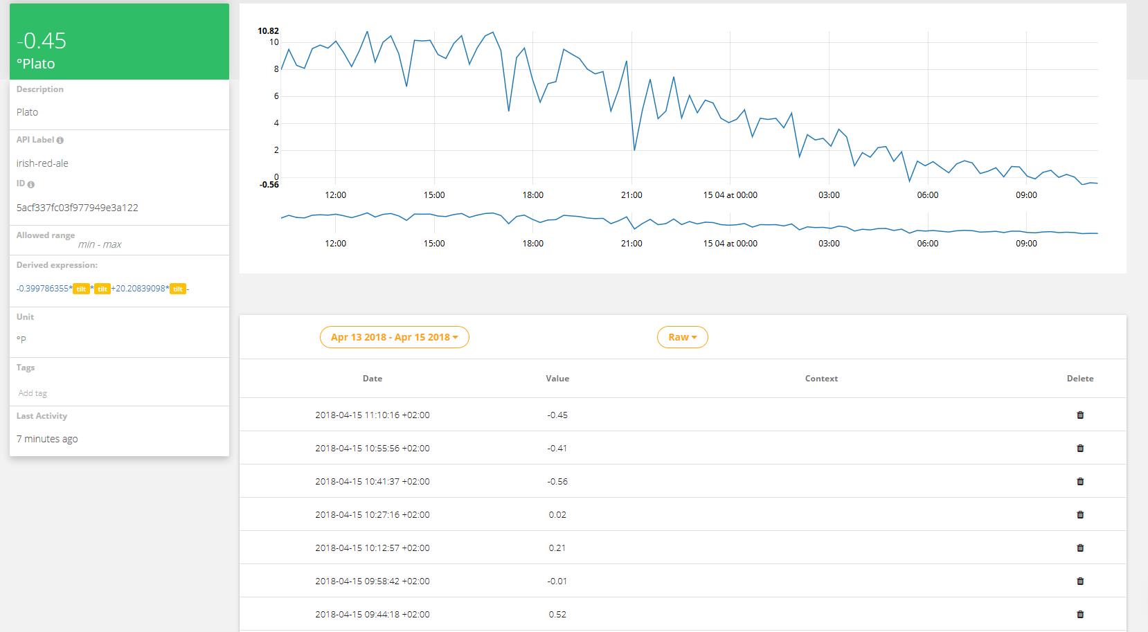 Ich habe in ubidots die Formel zur Berechung des Restextrakts leicht angepasst, weil der angezeigte Wert im neuen Sud etwas zu hoch war (im Vergleich zum manuell-mechanisch gespindelten Wert).