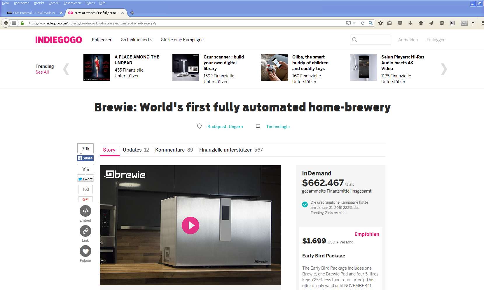 Hier jedoch stellt der brewie ein für jeden bestellbares Serienprodukt dar, das mit dem Lieferdatum März 2016 angegeben ist.