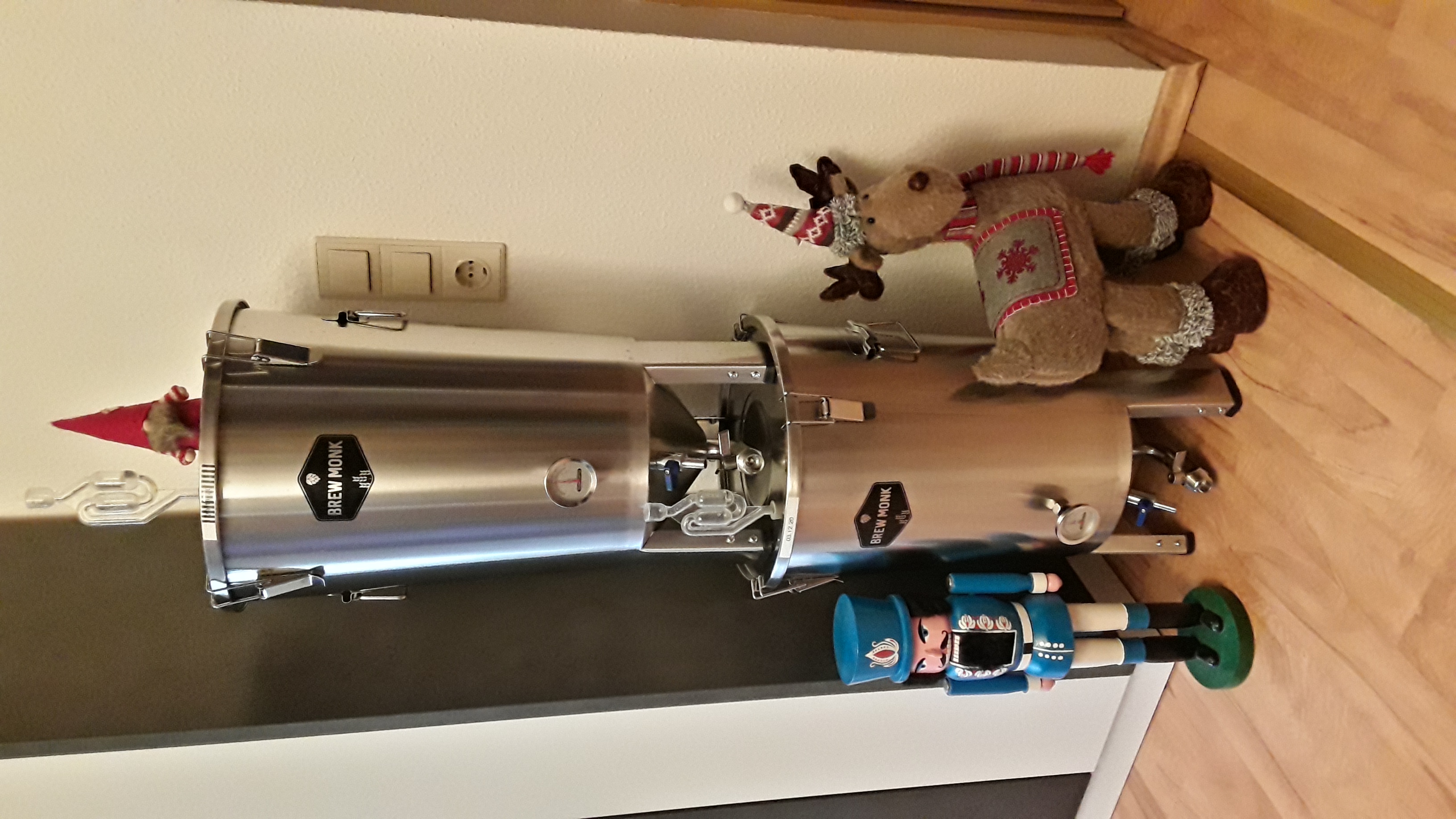 Gebraut wurde vorgestern Nacht, mit viel zuviel Invertzuckersirup (selbst erzeugt) versetzt vor und nach Kochung (waren erst fürchterliche 34 °P ), Schüttung dunkel, mit Kardamom