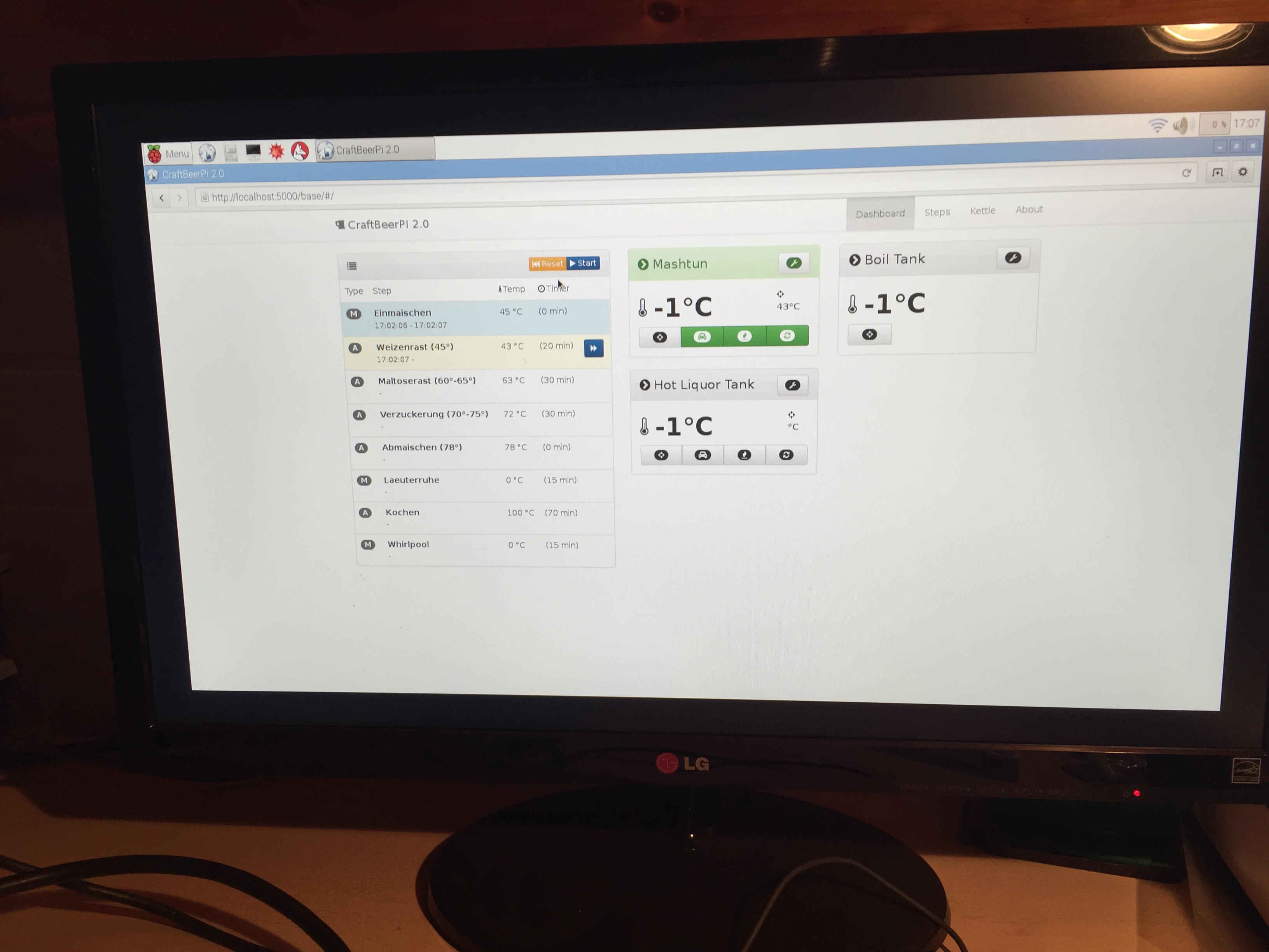 Kiosk Mode läuft auch. Somit wird auf dem Bildschirm der per HDMI am PI angeschlossen ist direkt nach dem Start ein Browser mit CraftBeerPI im Fullscreen geöffnet.
