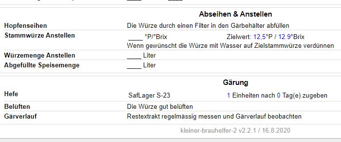rakader hat geschrieben: Samstag 15. August 2020, 18:43 Du sprichst vom Spickzettel? Du sprichst von welcher Version? Dein Bild sieht nach einer alten Version aus. In v2.2 ist Einmaischen nicht mehr gesondert aufgeführt. Alles steht jetzt unter Maischplan. Aktualisiere auf die neue Version.