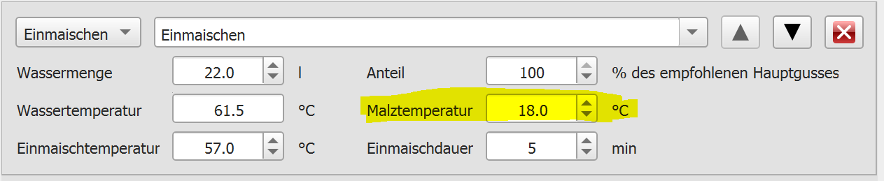 Sorry, ich find´s nicht. Vor der Version 2.2 konnte ich die Malz- und die Wassertemperatur eingeben, um die Einmaischtemperatur zu finden. Wo kann ich denn bei 2.2 die Malztemperatur eingeben?