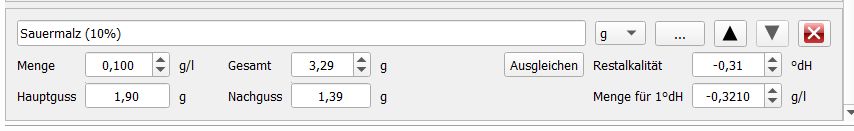 Man kann die Menge Sauermalz für den Nachguss nicht auf 0 setzen.