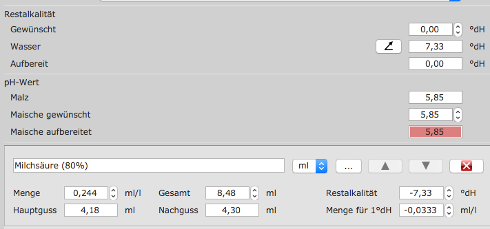 Wie kommt es jetzt zu den phantastischen Milchsäuremengen? Ich habe jetzt den Wunsch-Maische-pH-Wert mit 5,5, angegeben. Dabei hat sich die gewünschte Restalkalität des Wassers auf- 16.84°dH geändert?