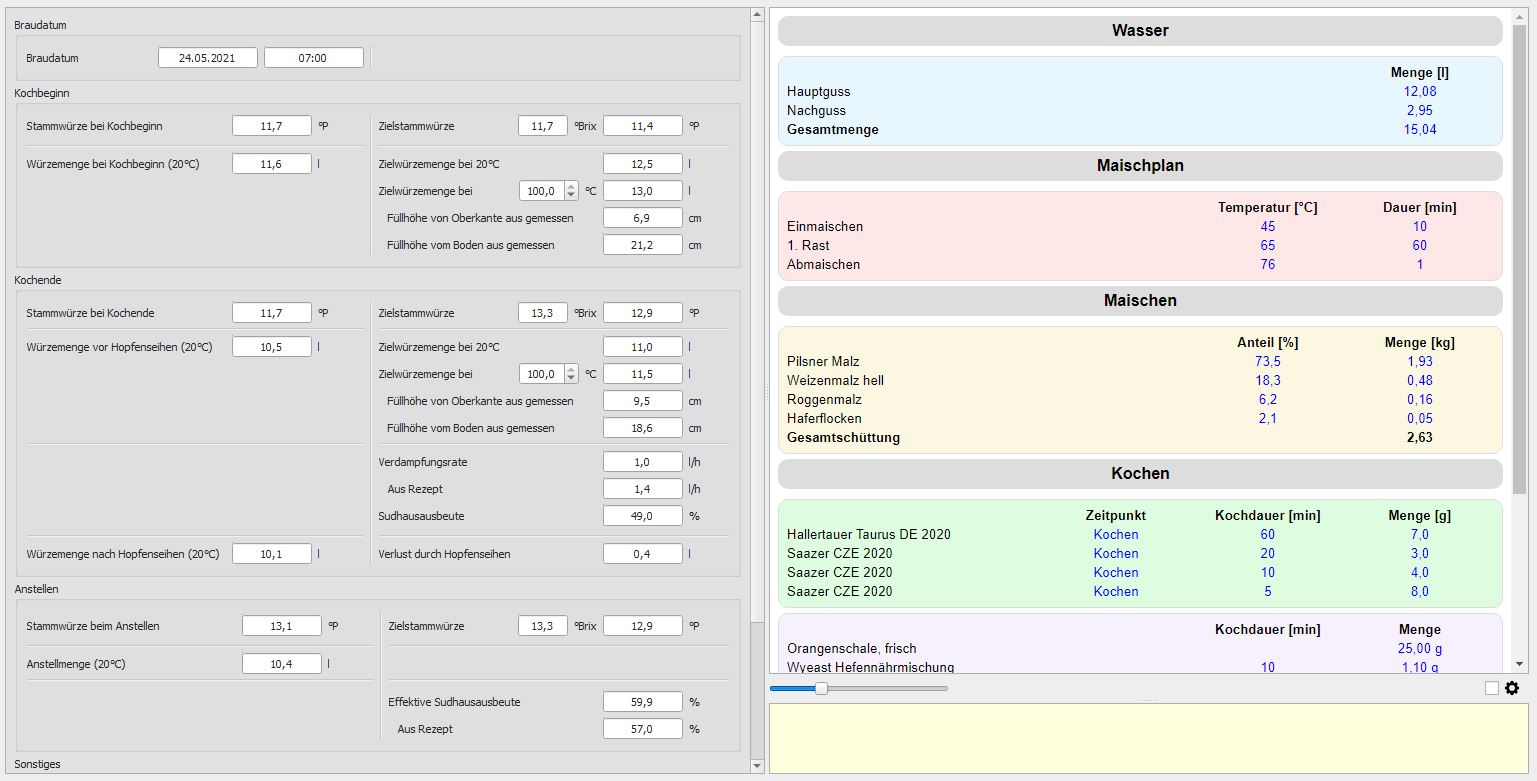- Ich würde auch gerne die Stammwürze der Vorderwürze mit aufnehmen. (Geht natürlich auch unter Bemerkung)