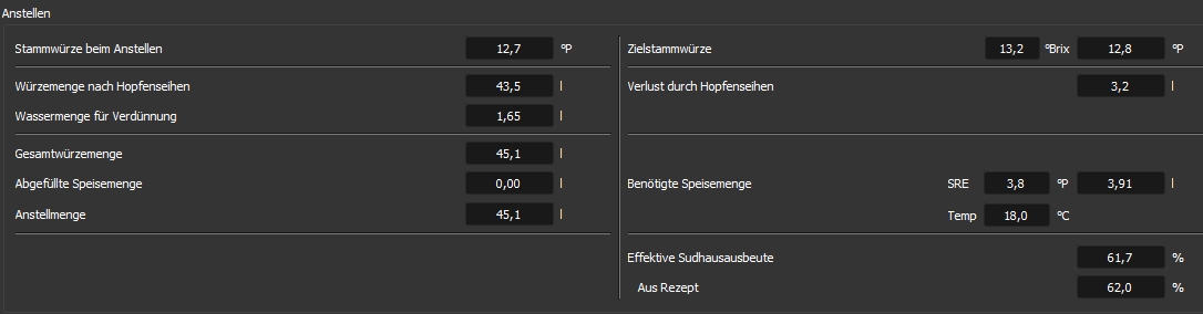 2.) Ich korrigiere den Wert auf 12,7° Plato bei "Stammwürze zum Anstellen"