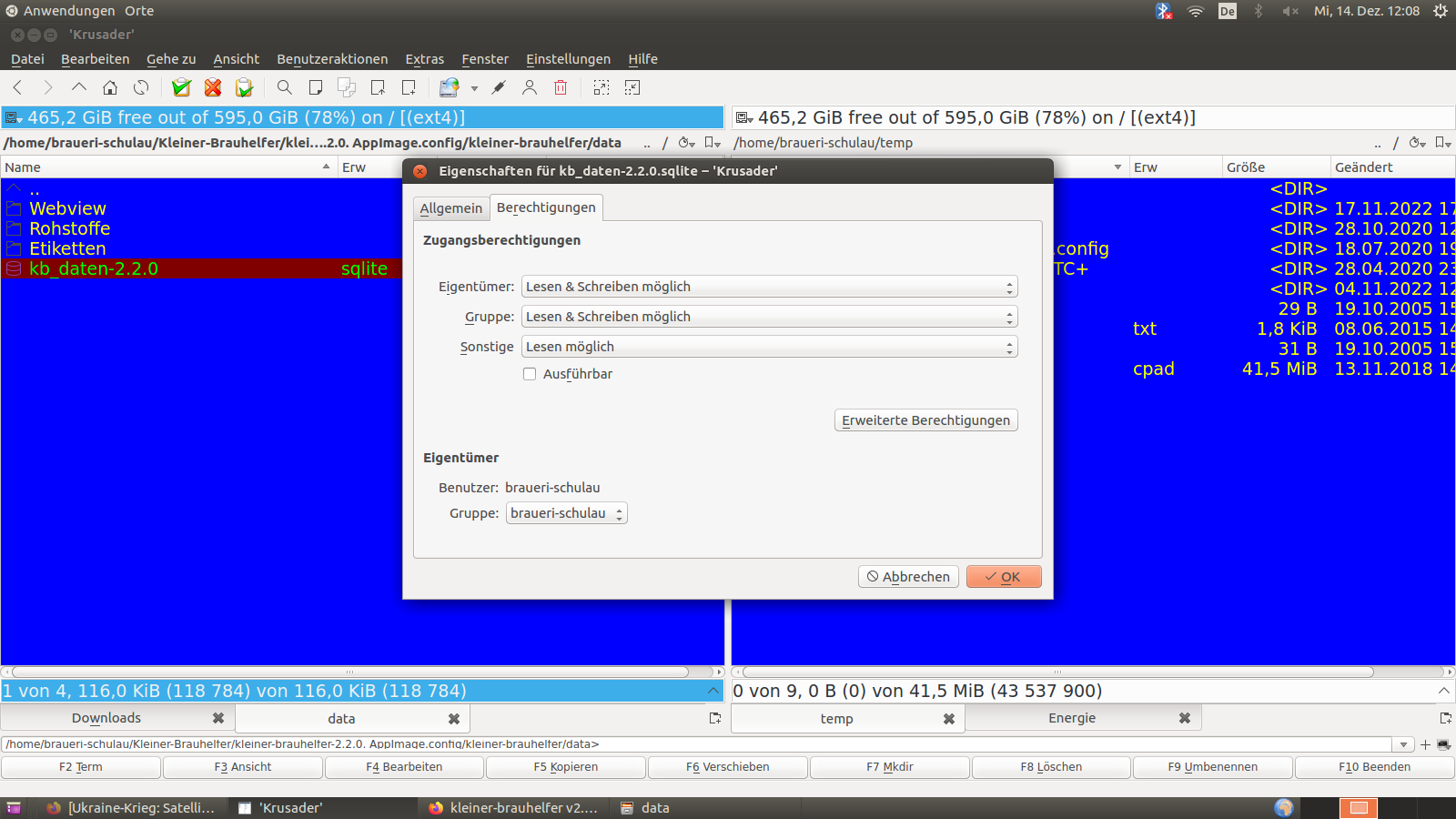 bourgeoislab hat geschrieben: Mittwoch 14. Dezember 2022, 15:52 Beim Export geht es nicht um den Schreibzugriff für kb_daten.sqlite, sondern um den Speicherort, wo du das Rezept exportieren willst.