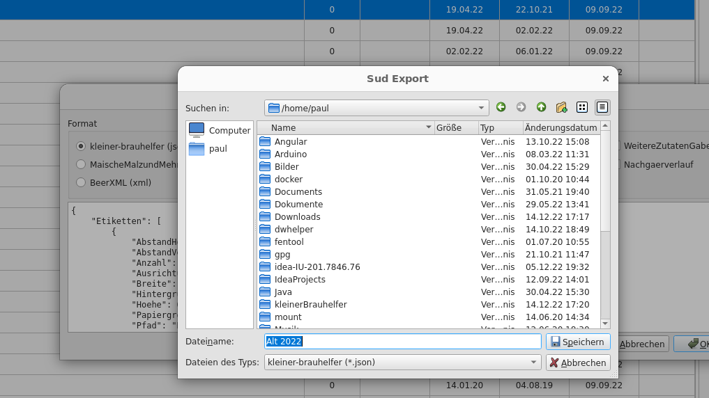 Die genaue Meldung beim Sud Export ist konnte Datei nicht schreiben, fehlt da ein Programm dass *.xml oder *.json schreiben kann ?