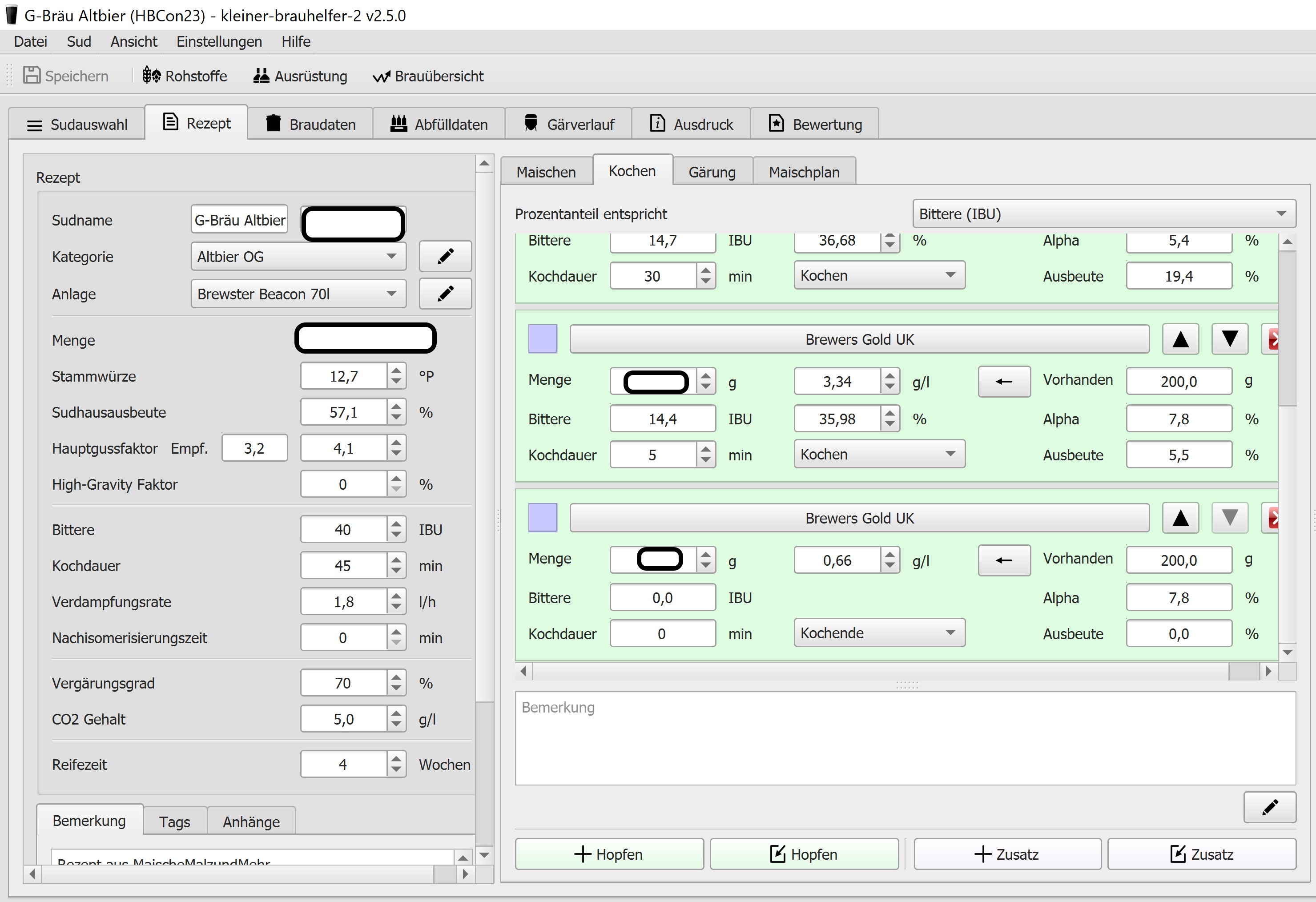 Man möchte es nicht glauben: Nicht jedem ist ein Mischkreuz auf Papier vergönnt, vielen ist das auch nur lästig. Mischkreuzberechnungen gibt es im KBH viele. Das Programm versucht sich möglichst breit aufzustellen, um alle möglichen Vorlieben mitzunehmen. Diese Toleranz zeichnet den KBH gegenüber vielen anderen Brauprogrammen aus, wie ich meine.Citrist hat geschrieben: Mittwoch 31. Mai 2023, 14:57Man sollte es nicht glauben, ich habe tatsächlich mitgelesen.rakader hat geschrieben: Dienstag 30. Mai 2023, 22:16Wenn Du genau mitgelesen hättest, liegt das Problem am Platz und damit an der Verständlichkeit. Generell ist ein Mischkreuz eine gute Idee, aber es ist immer ein eigenes Fenster, das beim Anwender ohne einschlägigen Bedarf Rätsel auslöst. (...)Citrist hat geschrieben: Dienstag 30. Mai 2023, 22:06