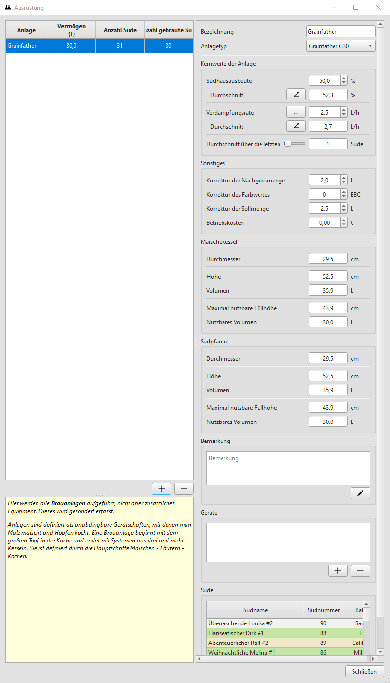 Dass der Hauptgussfaktor bei der Einstellung Grainfather verschwindet, ist natürlich nicht selbsterklärend und etwas unglücklich. Da ich keinen Grainfather habe, war mir das nicht bekannt.