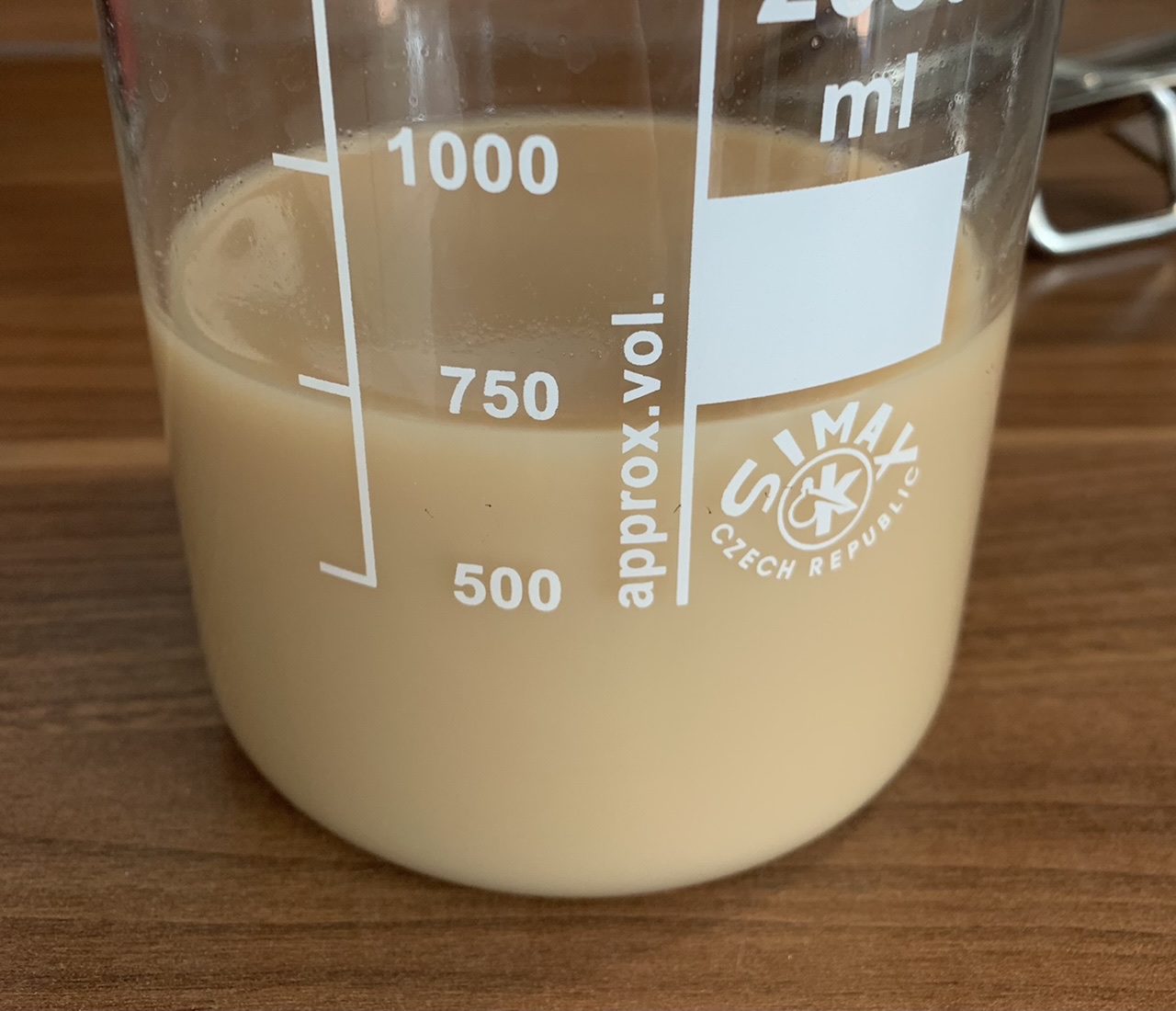 …was mich jetzt auch kaum wundert, da jetzt viel Faktoren in Richtung Schaum zeigen. Du hast mehr Aktivität, da du jetzt mehr Hefe hast, du hast wieder mehr Zucker (höhere Viskosität), du rührst bezogen auf das Volumen weniger…