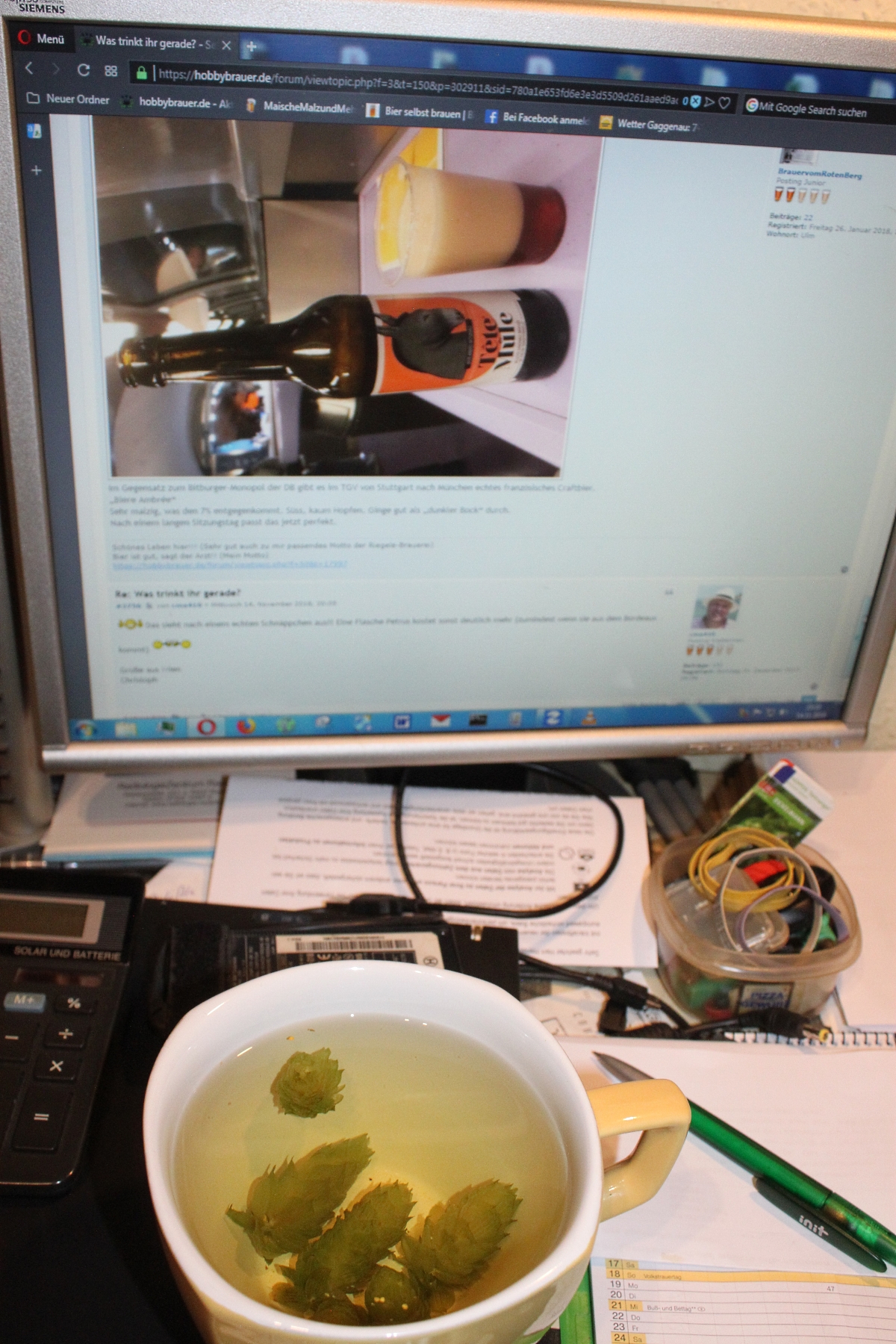 Mhhh himmlisch leckerer Cascade Tee und anschließend noch ein IPA das ich im September gebraut habe.