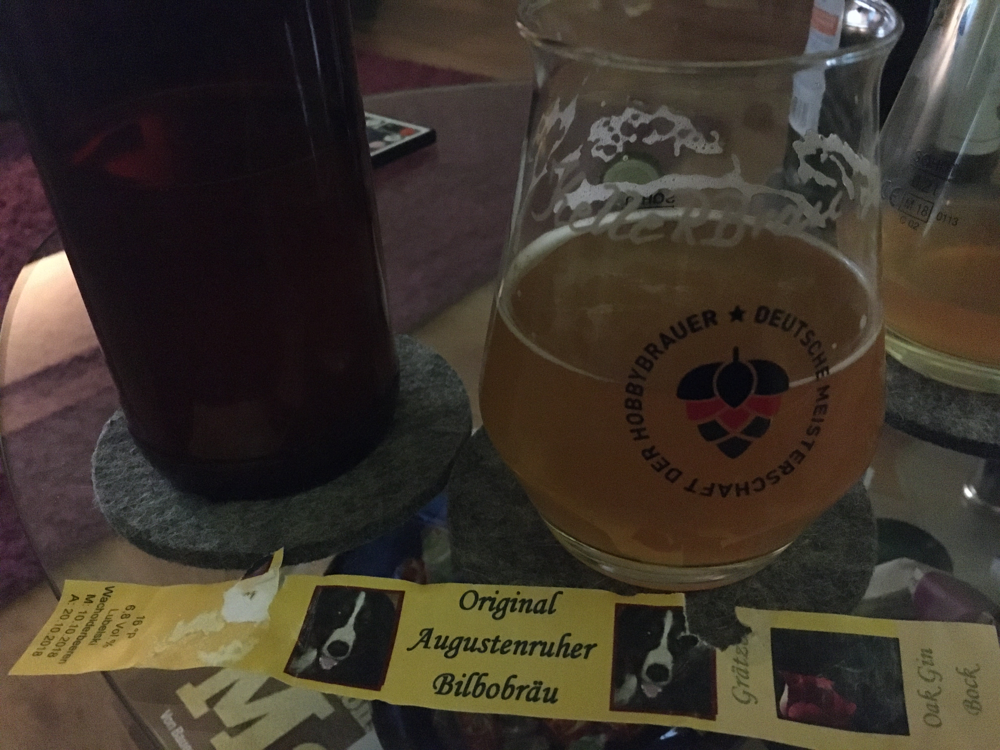 Habe im Kühli noch ein Grätzer Oak Gin Bock von Bilbobräu gefunden. War vom letzten Wichteln. Jetzt etwas über ein Jahr in der Flasche. Sehr leckeres Tröpfchen.