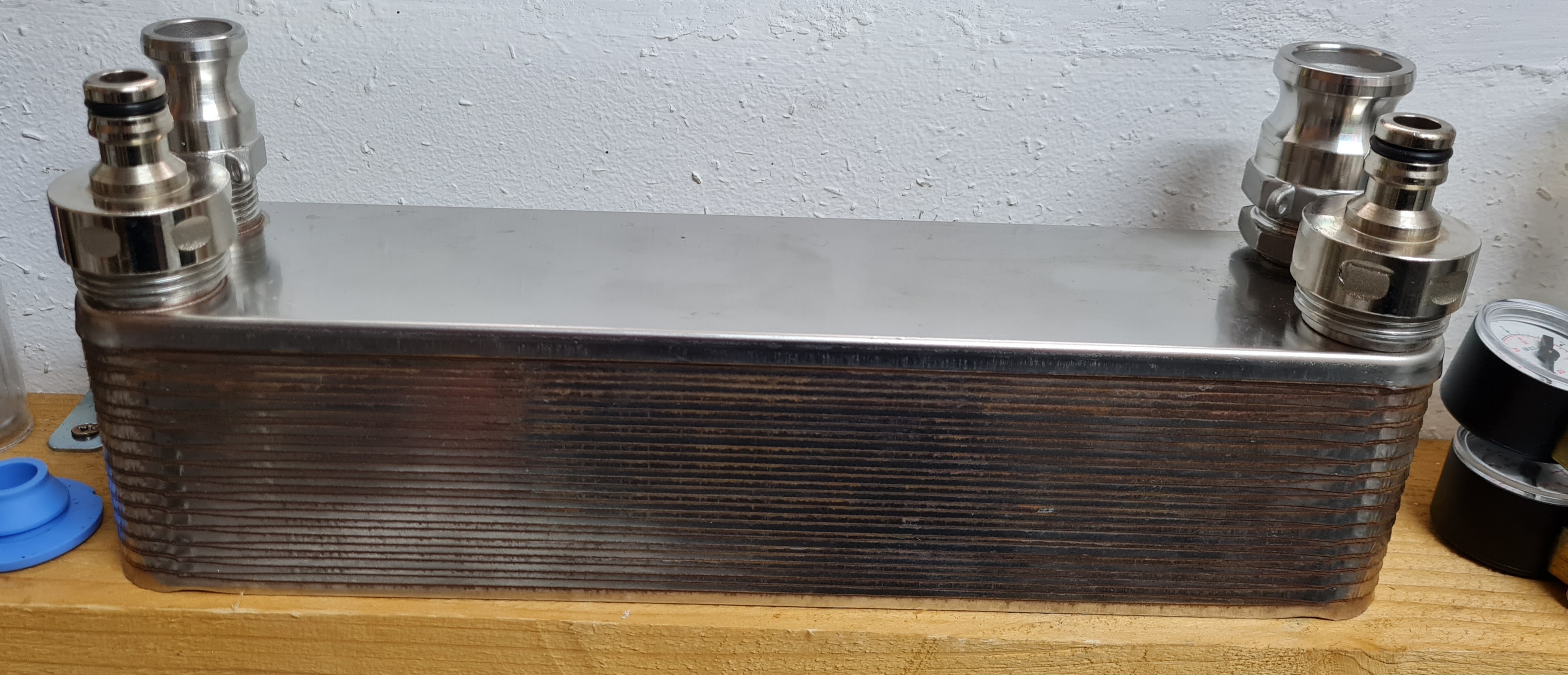 Den Wärmetauscher habe ich gerade das erste mal mit Wasser getestet und muss sagen, dass ich doch sehr überrascht über die Leistung bin.