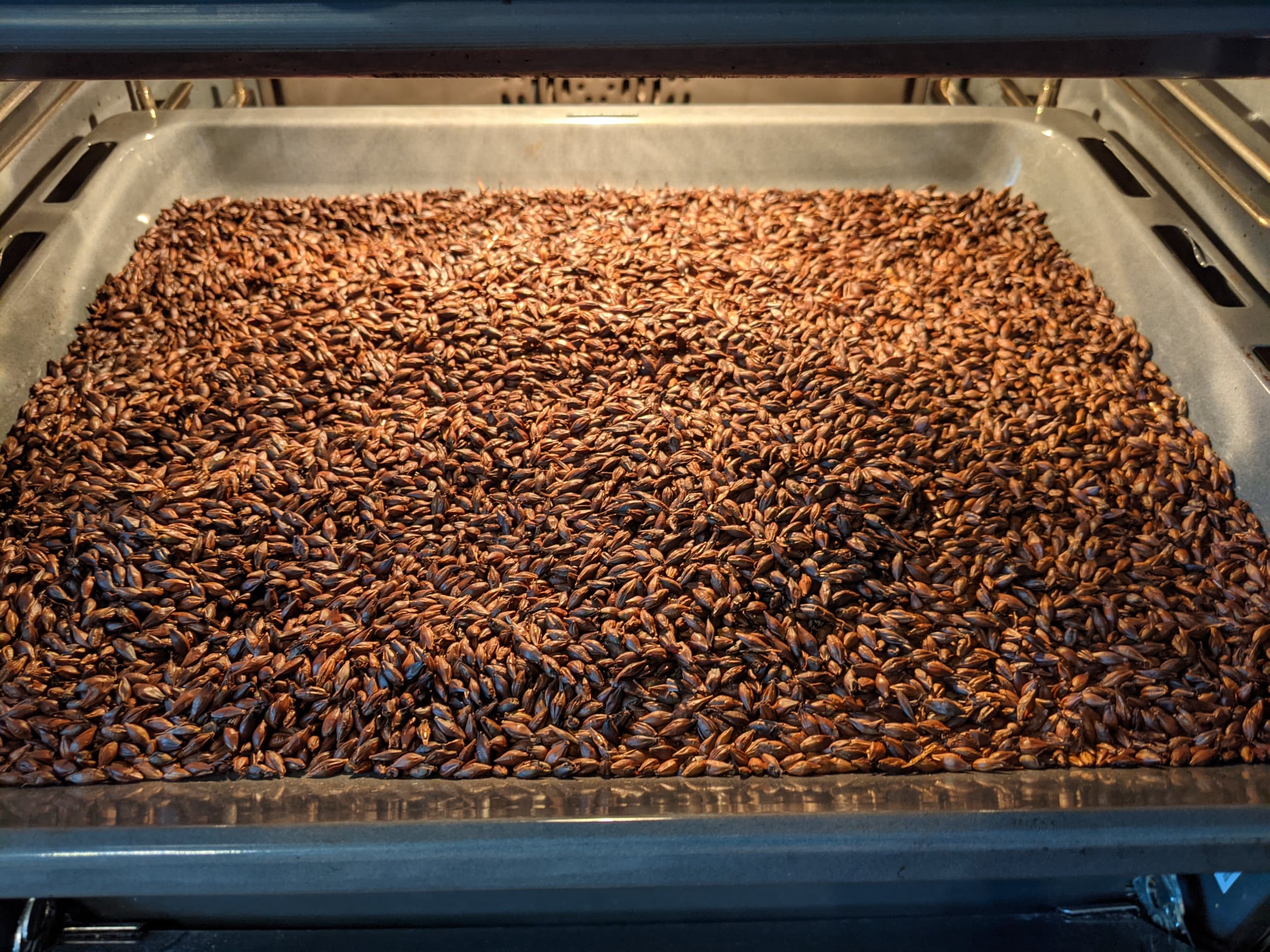 Gestern habe ich noch 650 g Roggenmalz getoastet (an https://www.brewingnordic.com/new.../toasting-rye-malt/ orientiert).