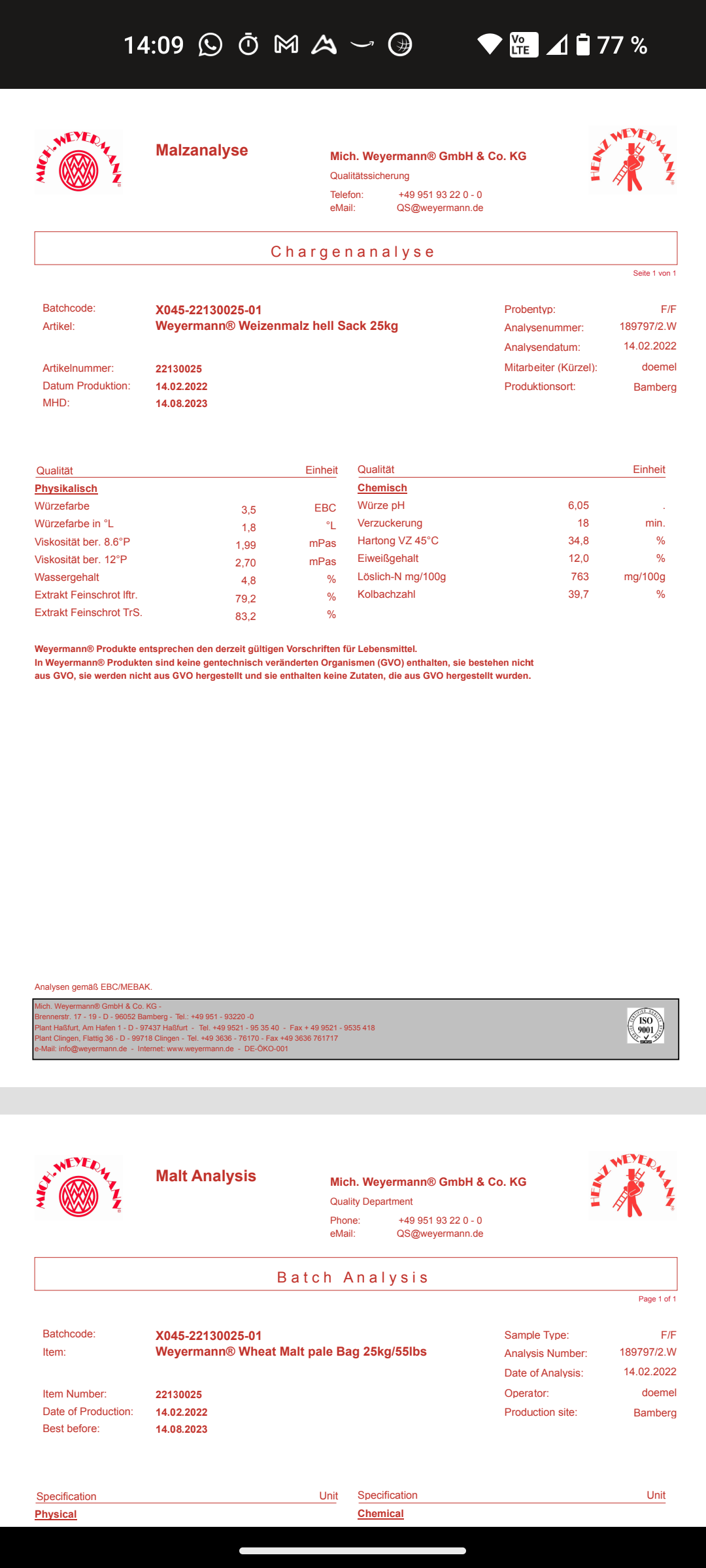 Noch ein Pluspunkt für ganze Malzsäcke. Da gibt es idR eine Analyse