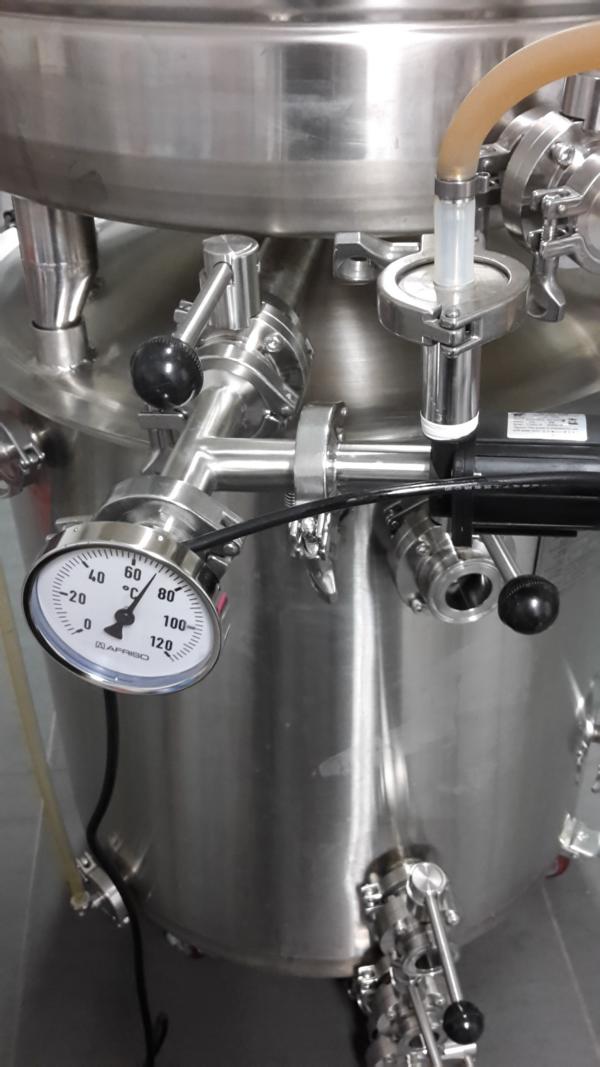 CIP-Kugel: Ja, interessante Geschichte. In meinen Plänen ist die CIP-Kugel direkt auf dem unteren Deckel positioniert. Ich habe den Jungs im Workshop gesagt, dass sie nun exakt das schweissen sollen, was sie auf dem Papier sehen. Aus einem mir immer noch nicht erklärbaren Grund kam dann einer auf die Idee, es sei doch geschickter, die CIP-Kugel an der Seite mit einem Rohr zu befestigen. Ich habe das erst ziemlich spät gesehen und dann veranlasst, dass man bei den restlichen BT140 die CIP-Kugel so anbringt, wie ich das wollte. Ich finde die Lösung am Deckel 1. günstiger und 2. besser.