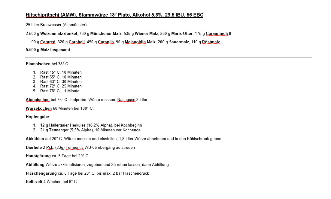 Da stecken auch Empfehlungen von Weyermann und eigene Erfahrungswerte drin.