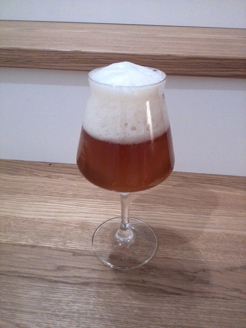 Aussehen: Goldig (heller als im Bild), sehr trüb, feinporiger, nicht sehr lang stehender Schaum