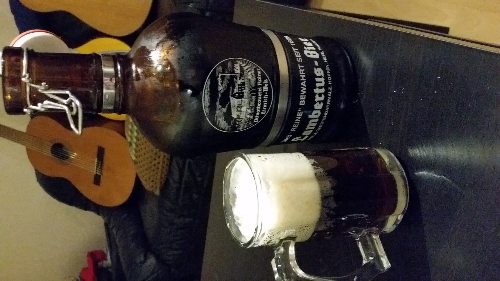 Mein Sohn hat gestern einen Kurztrip nach Konstanz gemacht unter anderem war er in der Gasthausbrauerei Joh.Albrecht und brachte mir eine 2 Liter Flasche Kupfer (malzig mildes Dunkles) mit.