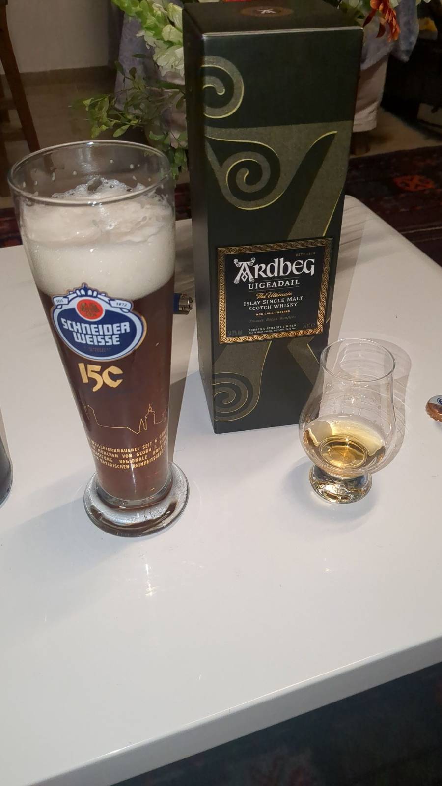Passend zum heutigen Abend eine Schneider Weiße und einen Ardbeg Uigeadail.