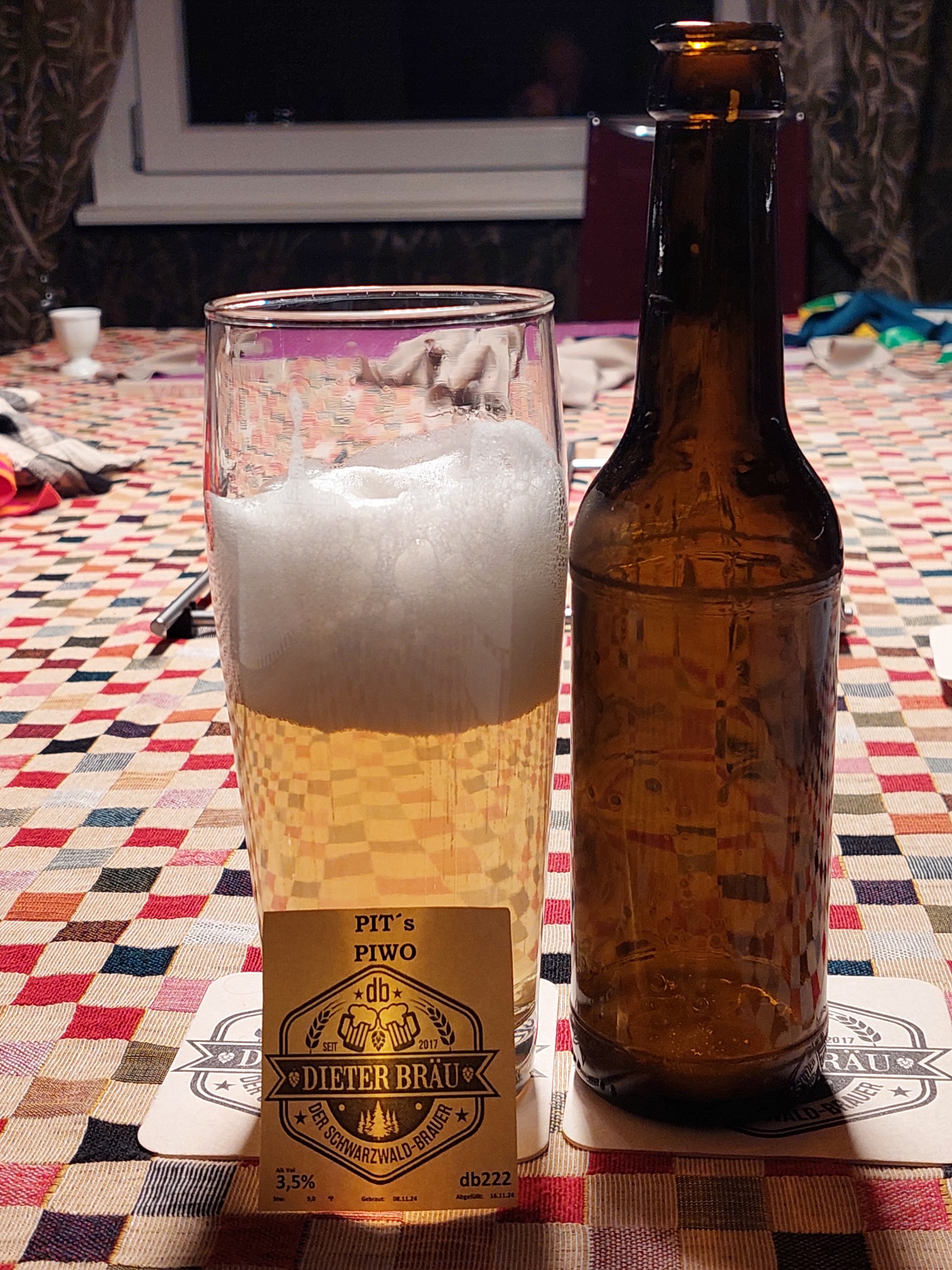 Einen dunklen Weizen Doppelbock von Braukollege Herbert. Immer noch sehr gut. Und zum Abendbrot gab es ein Mexican Lager mit einer schönen Limettennote, gebraut von einem Kollegen unserer Braugruppe in Lüneburg. Ein wunderbares Bier.