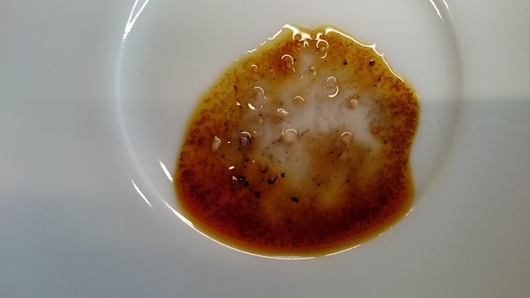 nach 120 min Abbruch. "Sieger" ist die Polenta, die Probe auf Seite der Cornflakes ist noch tief violett... da hat sich bei der Jodprobe optisch quasi gar nichts getan!
