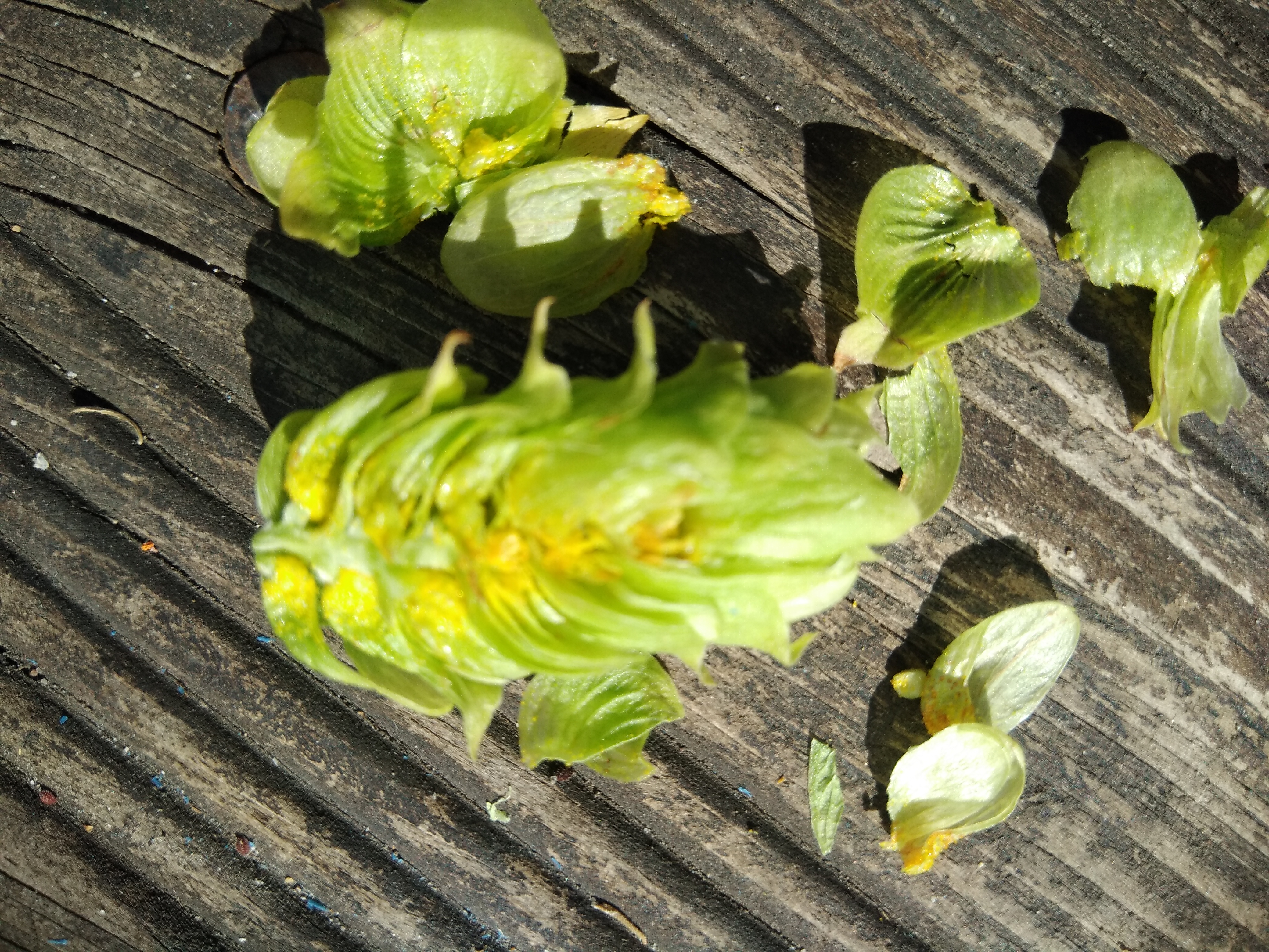Ich habe gestern eine Dolde aufgemacht und meine zu erkennen, dass Lupullin anfängt sich zu bilden. Tradition,2. Jahr. Ich schätzte mal in 2-3 Wochen ernten zu können - richtig? (Letztes Jahr war es zu spät…) Gegriesel ist schon da, nur noch nicht richtig gelb…