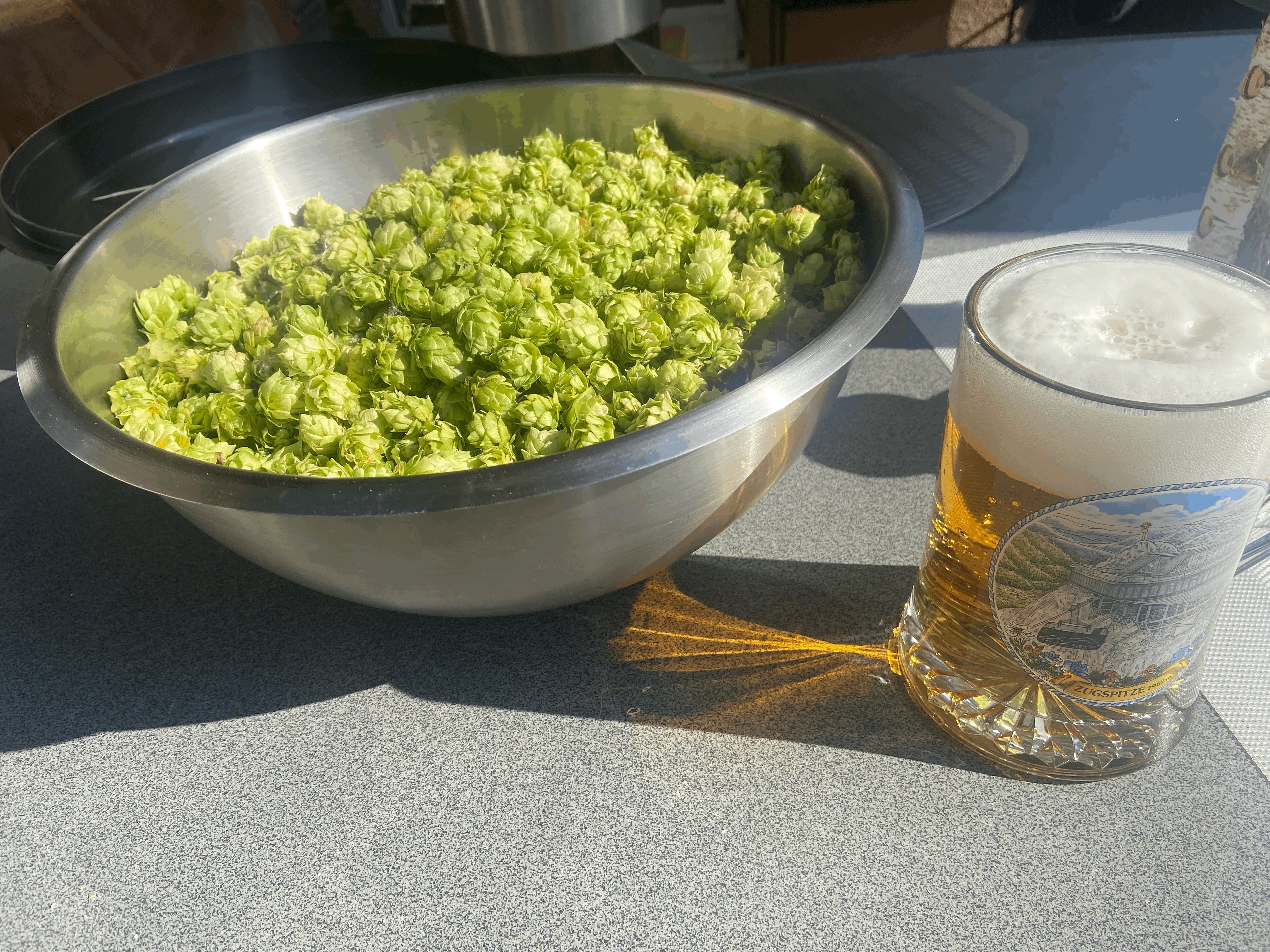 Bin Hobbybrauer seit 2019 und habe dieses Jahr im Garten erstmals zwei Hopfenpflanzen eingesetzt. Einmal Huell Melon und einmal Ariana. Beide sind trotz der nicht optimalen Bedingungen (zu kurze Rankhilfen, horizontaler Wuchs, s. Bilder) echt gut gewuchert.