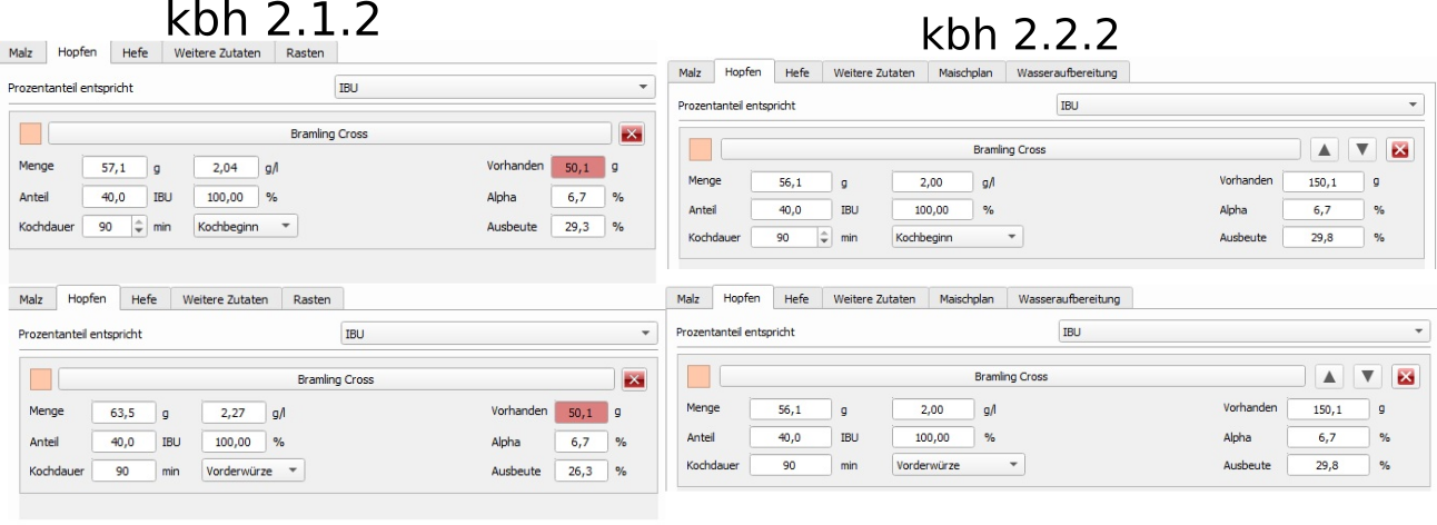 Der KBH ist mittlerweile ziemlich komplex geworden und ich blicke selber nicht immer durch:). Schicke mir doch dein Sud per PM. Exportiere es im kleiner-brauhelfer (*json) Format (nicht MMUM oder BeerXML). Dann schaue ich es mir an.