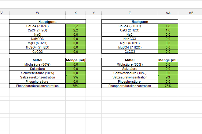 Gemeinhin sollte möglich sein, alle Salze in den Hauptguss zu geben. Der Rechner Brew'n Water beherrscht das.Majo_Craft hat geschrieben: Sonntag 15. Februar 2026, 14:46 Ich meine diese beiden Felder. Hier wird ja zusätzlich der Nachguss mit aufgesalzt. Ich selber möchte aber nur den Hauptguss bearbeiten.