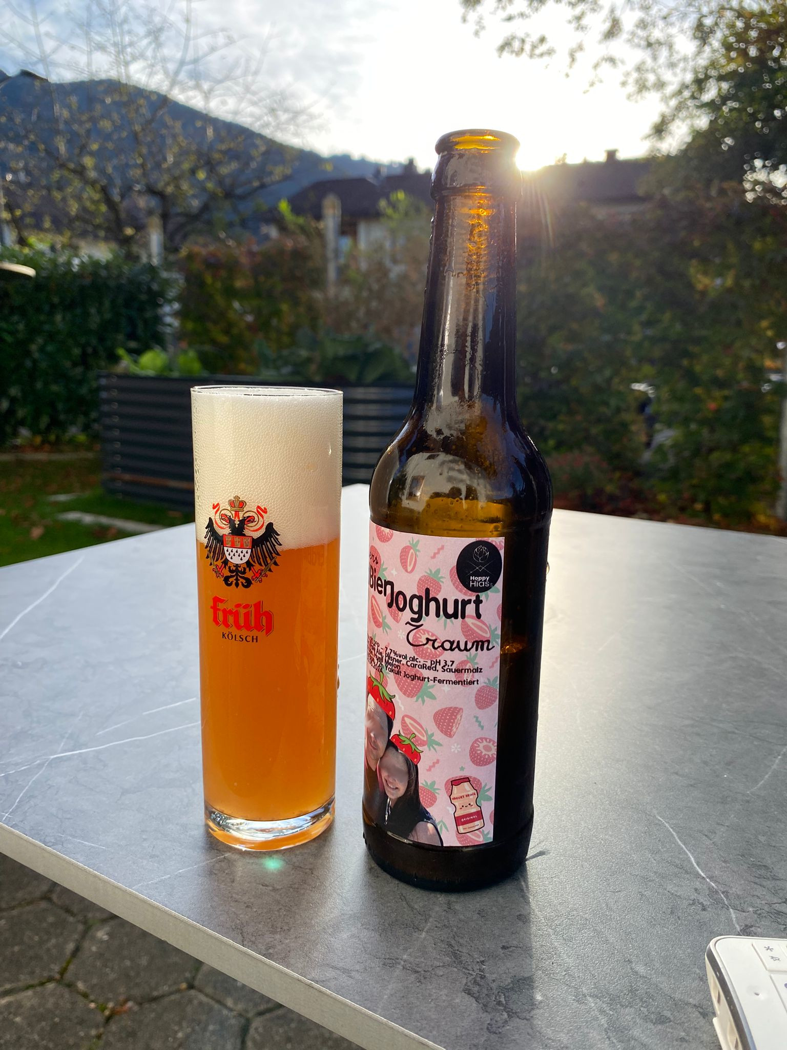 Im Nachgeschmack feine Säure, deren Aggressivität schnell nachlässt und fruchtige Noten. Da bin ich mir nicht sicher was vom Hopfen und was von den Erdbeeren kommt.