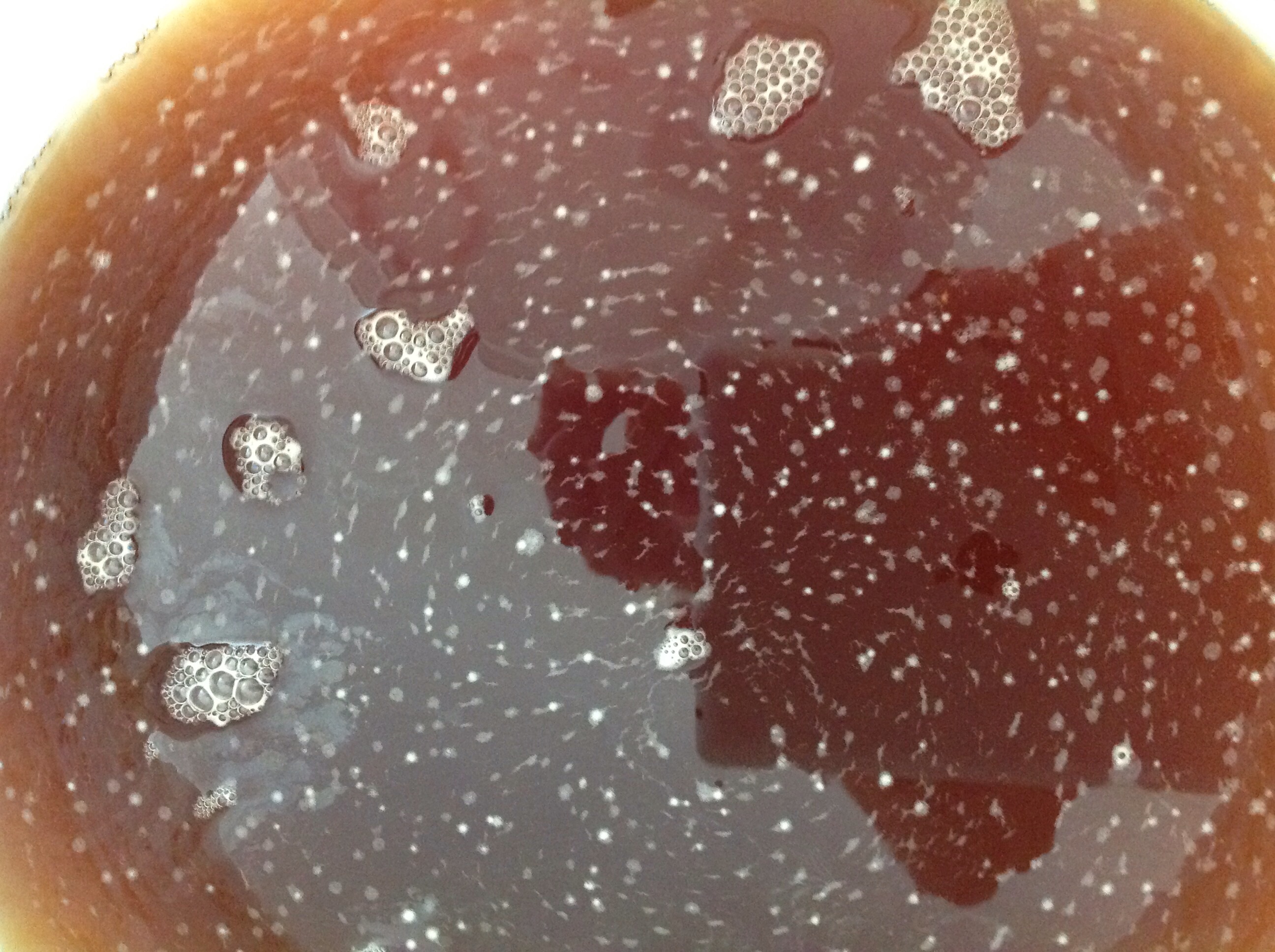 Es schmeckt nach Weissbier, Fehlgeschmäcker konnte ich nich feststellen. Vom Geruch her ist es auch typisch Hauptgärung, ist mir nichts untypisches aufgefallen.
