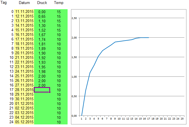 laut Thermometer hatte es - mal von 0,3°C Unterschied abgesehen - die gleiche Temperatur vom Vortag, auch die min/max Werte vom Tag lagen nie weiter als 1°C aus einander, daher habe ich mich ein bisschen gewundert.. Mal gucken wie es sich weiter entwickelt, ich hoffe jetzt nur, dass der Manometer nicht undicht ist.. :puzz