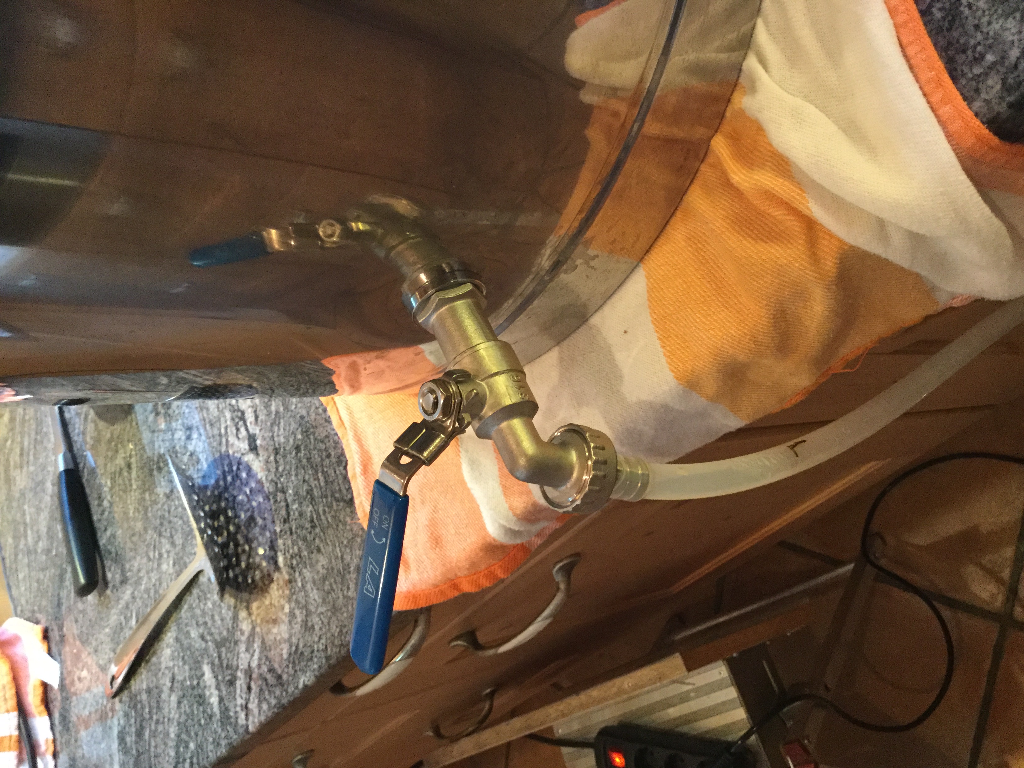 Ich würde mir den Aufwand mit einer grösseren Durchführung nur machen wenn du durch den Hahn abmaischen möchtest. Wenn das als Läuterbottich dienen soll würde ich die originale Durchführung verwenden (1/2") und da mit einem kleinen 1/2" uf 1/2" (beides Aussengewinde) einen solchen Hahn montieren. Ist einfach weniger Aufwand, bei mir ist das so in Kombination mit einer Läuterhexe im 70L Thermoport in Verwendung.