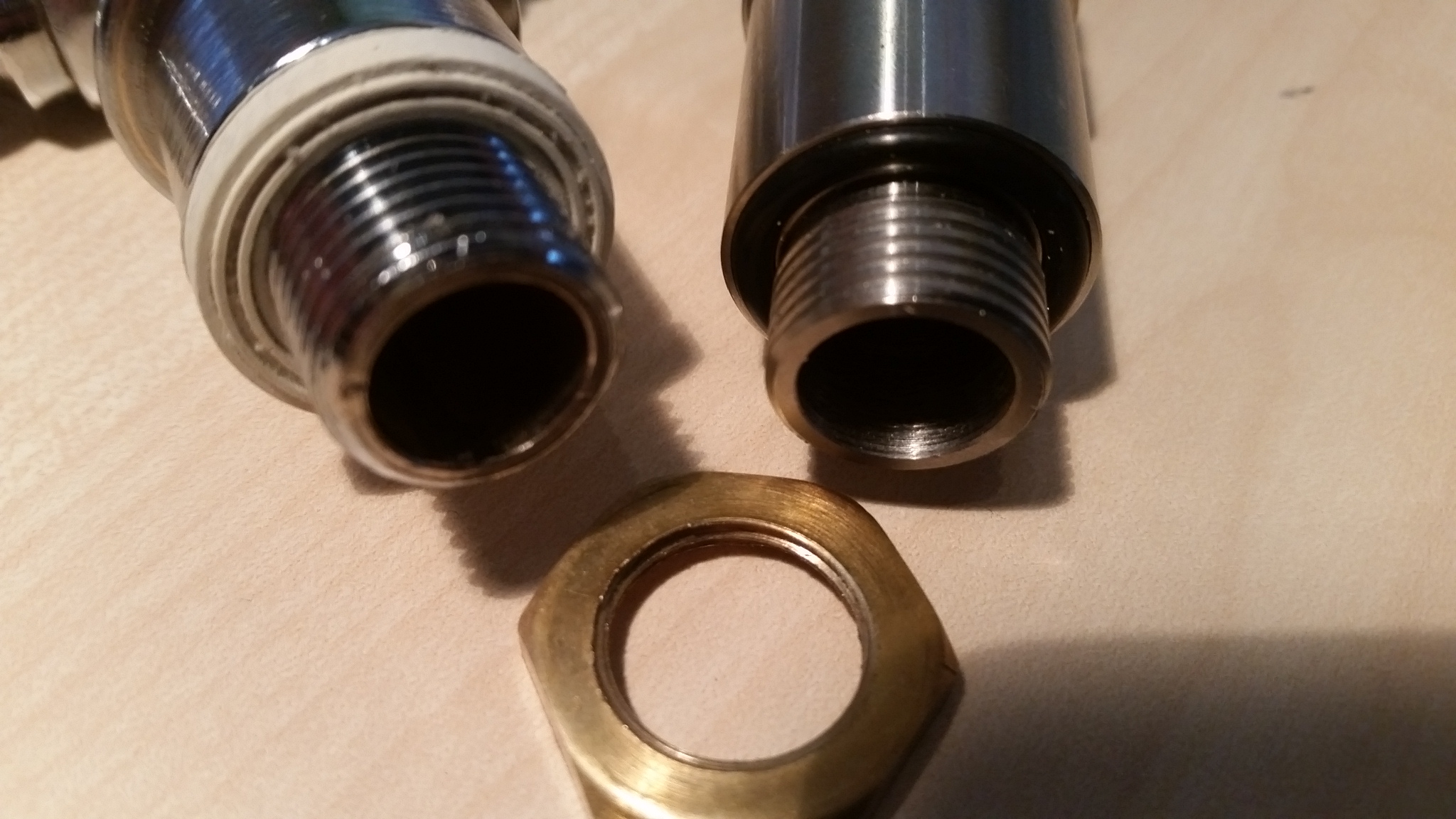 Leider passt die Original-Kontermutter vom TP38-Hahn (im Bild links) nicht auf das 3/8" Gewinde vom Matmill-Adapter (im Bild rechts) :crying .