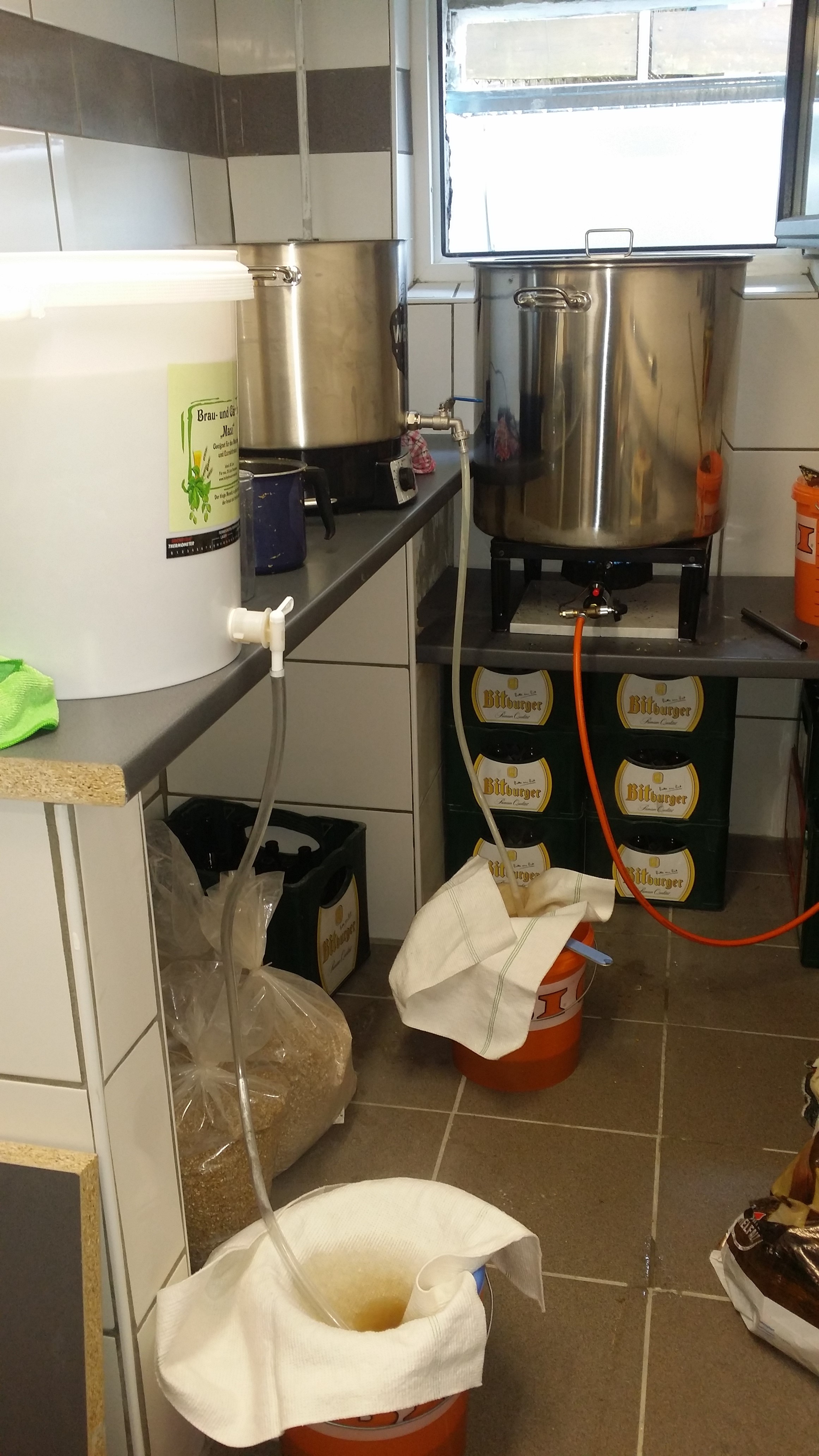 Also geläutert wurde dann einmal im Thermopott mit Läuterhexe und einmal im 30 Liter Matt Mill Läutereimer.