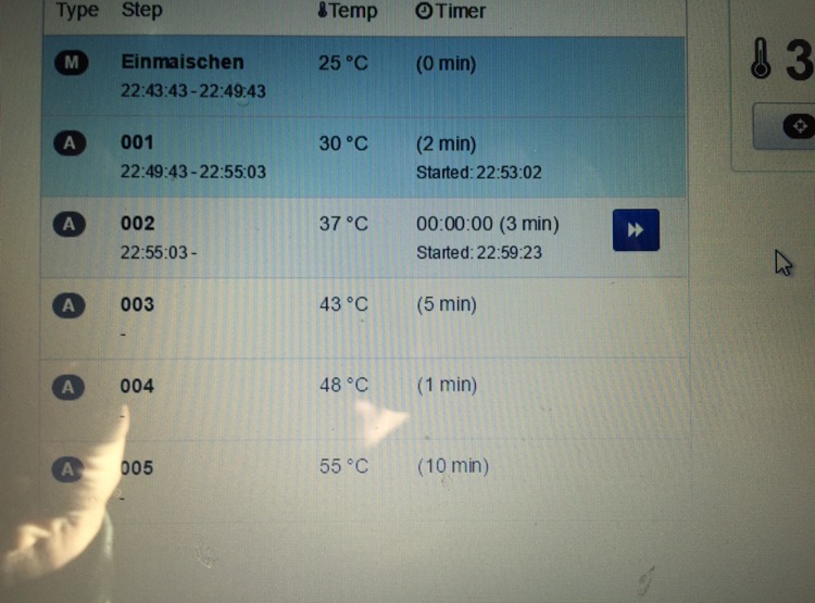 Wenn die gemessenen Temperatur auf 2 K an das Ziel herankommt fange ich an die Heizung zu takten: pro 0,2 K eine Heizstufe runter also z.B Ziel= 60°C ,Ist= 59,2°C -> Stufe 4.