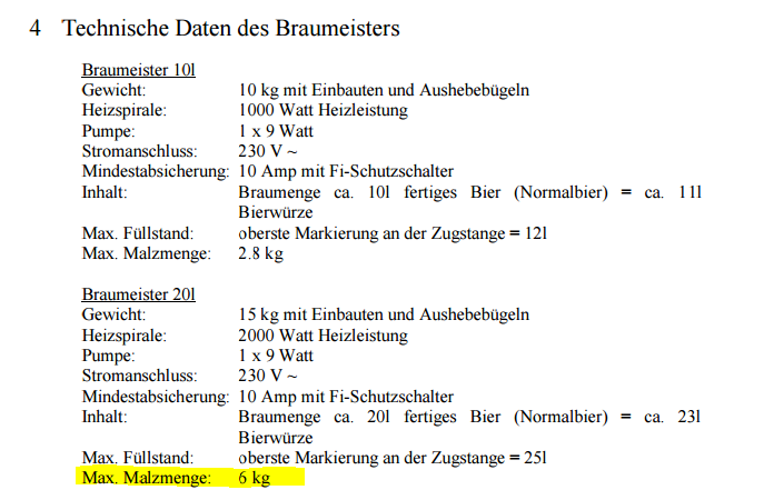 wow so viel Malz? Geht das ohne Probleme? Laut Beschreibung sollen max. 6 kg rein...