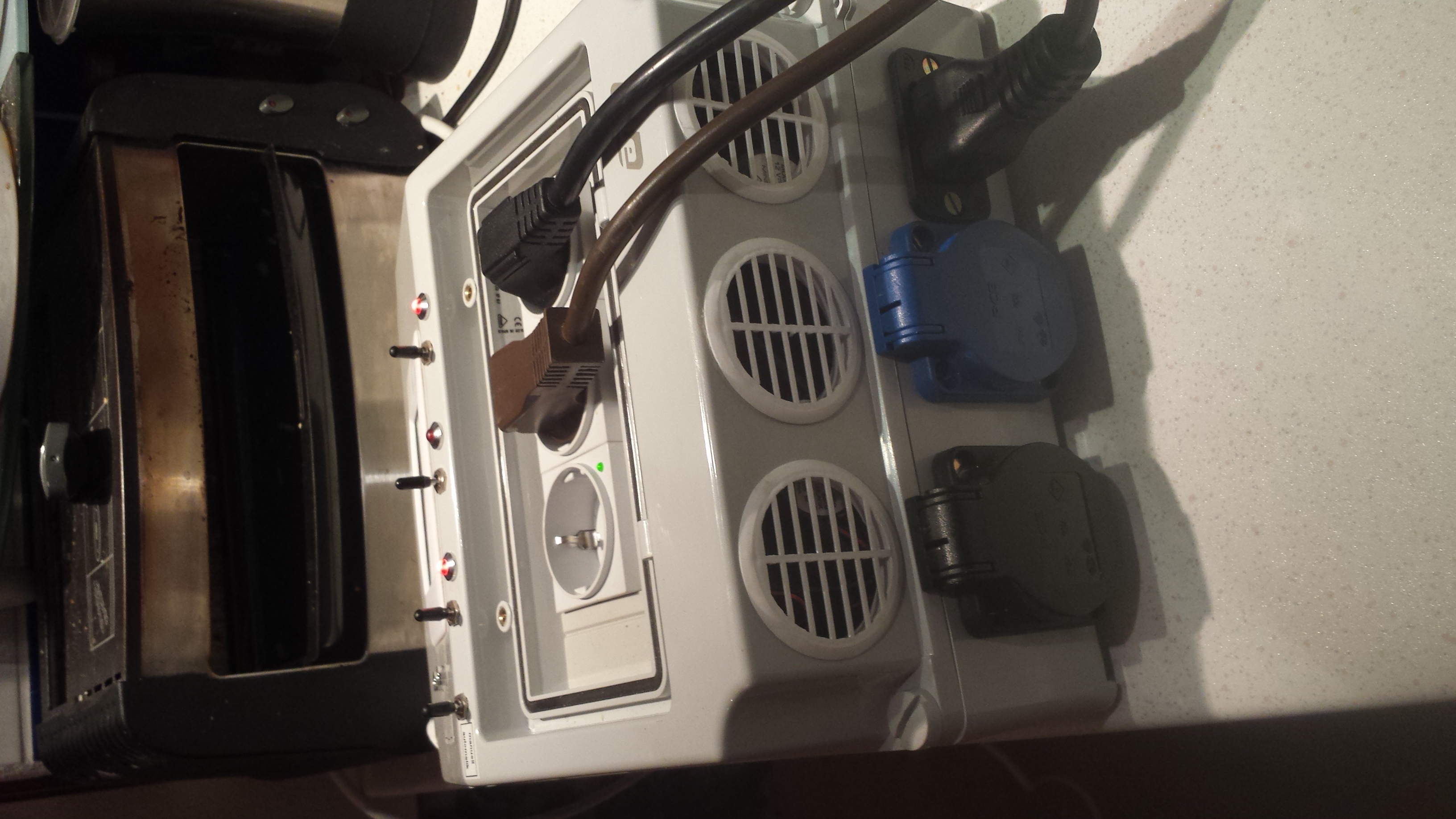 Die 3 geschalteten Steckdosen sind für Heizung Maische, Heizung Nachguss und Rührwerk. Wobei die Nachgussheizung nur dann läuft, wenn die Maische nicht geheizt wird, damit nicht zuviel Last auf der Sicherung ist. Die Nachgusstemperatur wird zwar nicht vom Programm gesteuert, dazu hätte ich nochmal Fühler und nochmehr Programmcode gebraucht. Aber die Rastzeiten reichen mir, um das Nachgusswasser zu erwärmen und ich kann beide Heizungen an einer 16A Strippe betreiben, obwohl die Hendi 3500W und der Kocher 2000W haben.