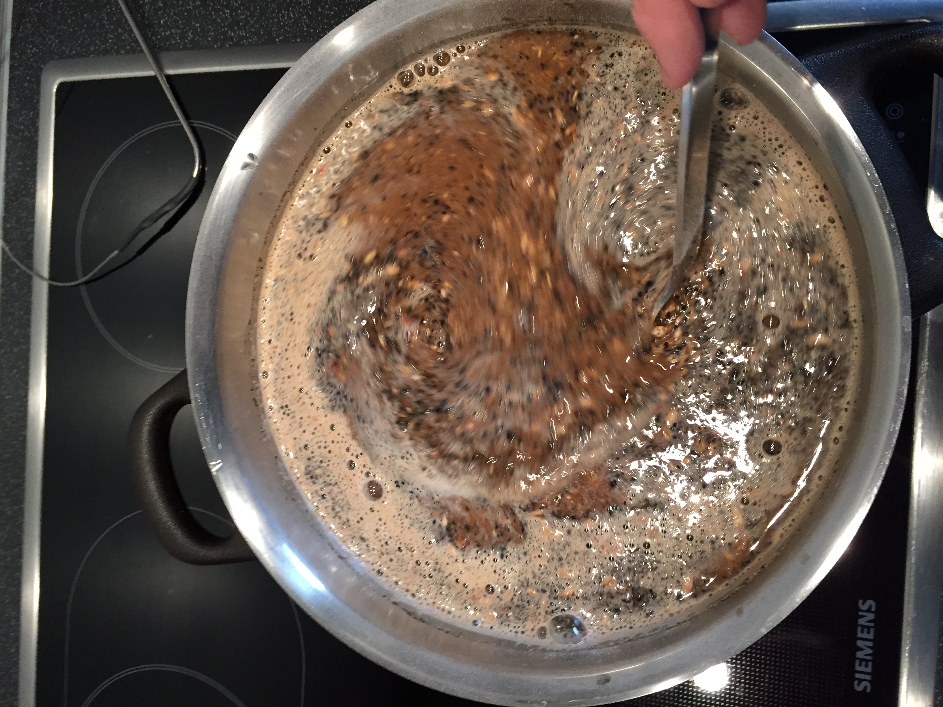 Zum Zeitfaktor: Am schnellsten geht ein Sud mit 60 Minuten Kombirast ohne Abmaischen und mit 60 Kochzeit. Vier bis Fünf Stunden bis zum Anstellen und fertig. Ich mache das im 38er Thermoport.